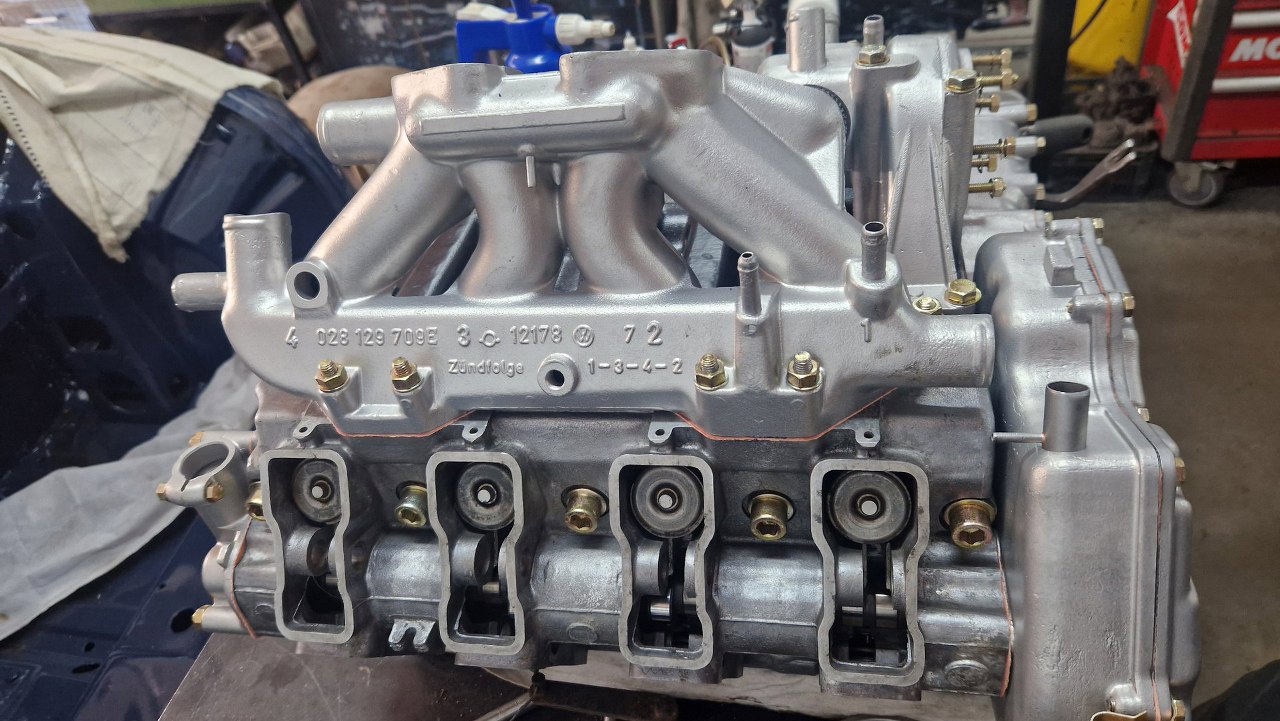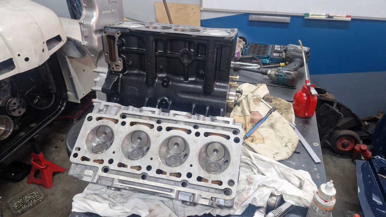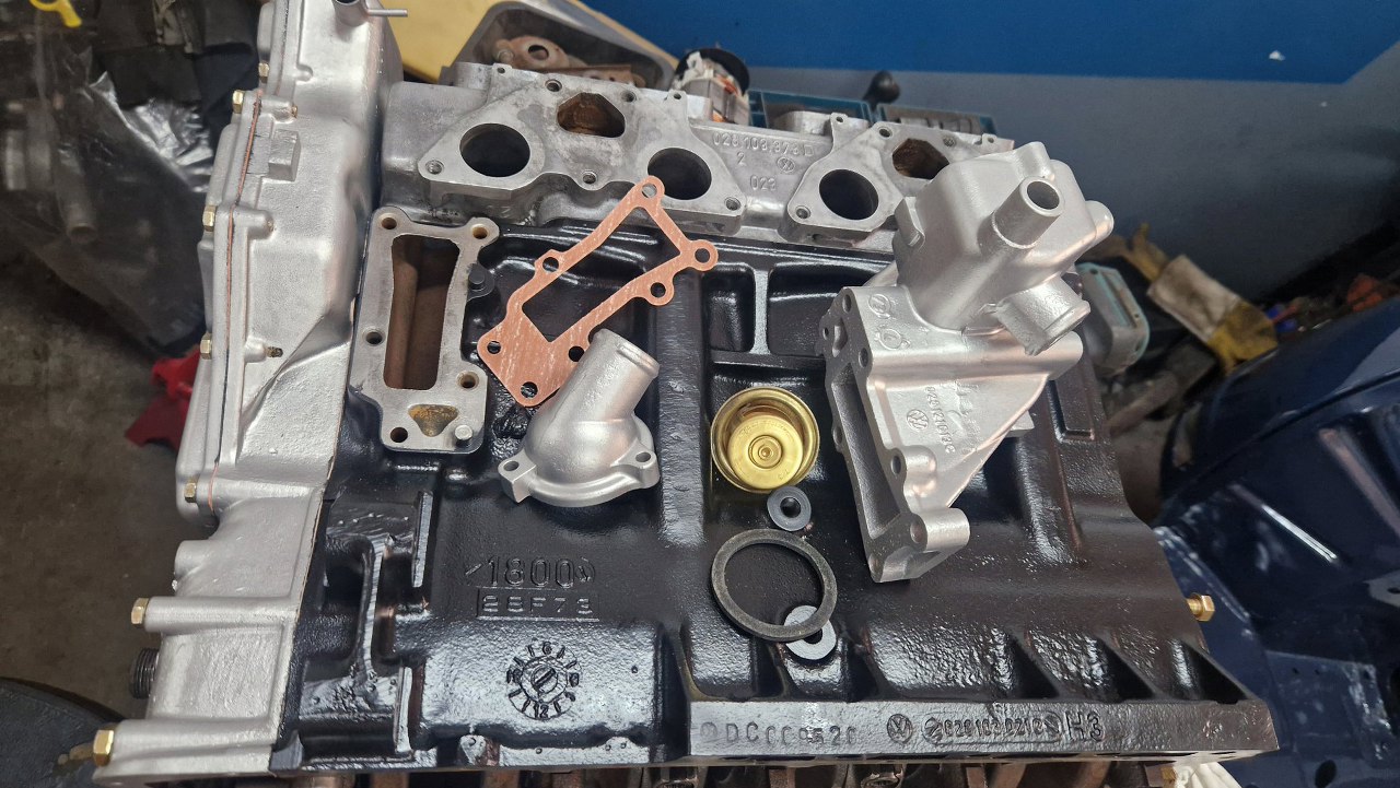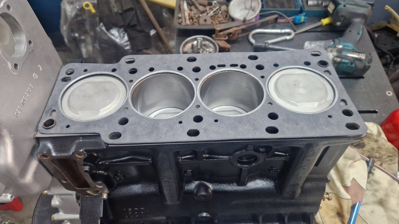 Silnik już postawiony do pionu, bo następną rzeczą będzie założenie głowicy. Tu już uszczelka na miejscu. Kolejna uszczelka musi trafić pomiędzy głowicę a pokrywę rozrządu, w miejscu przejścia wałka rozrządu - widać to po lewej stronie.