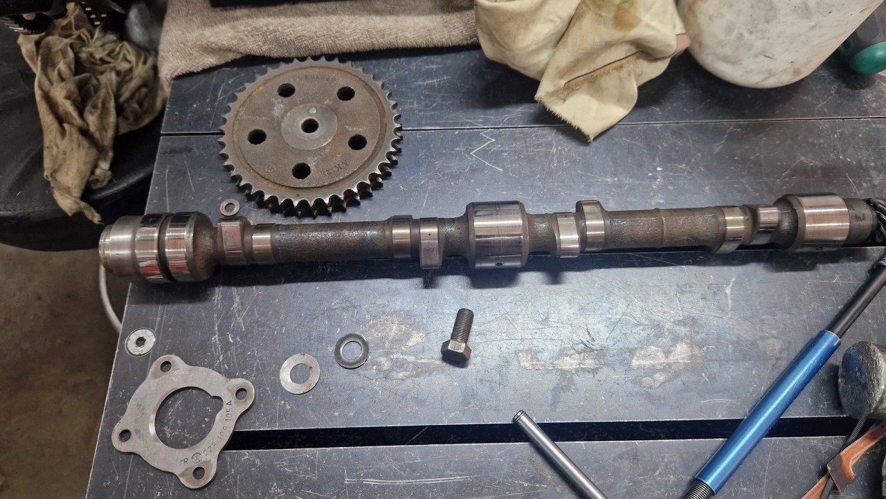 Przykręciłem płytkę trzymającą wałek, ściągnąłem napinacz i wlożyłem kółko zębate. Znaczniki rozrządu się zgadzają, więc jest w porządku :).