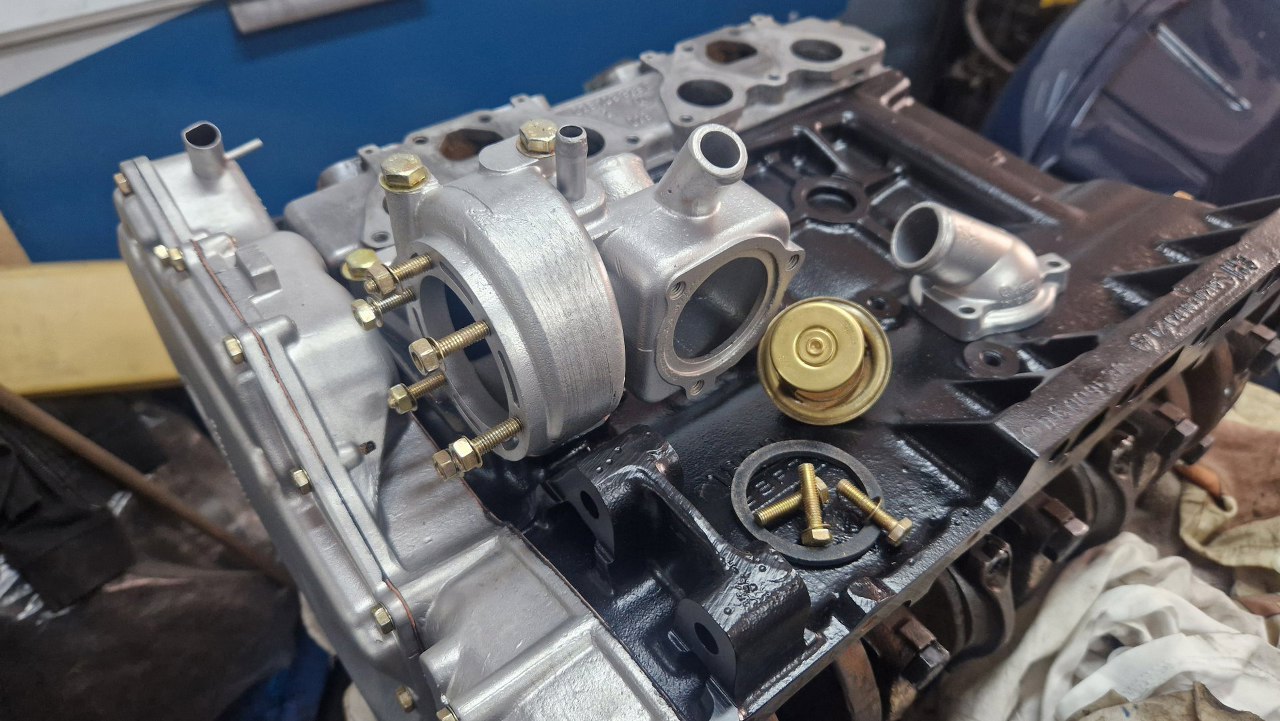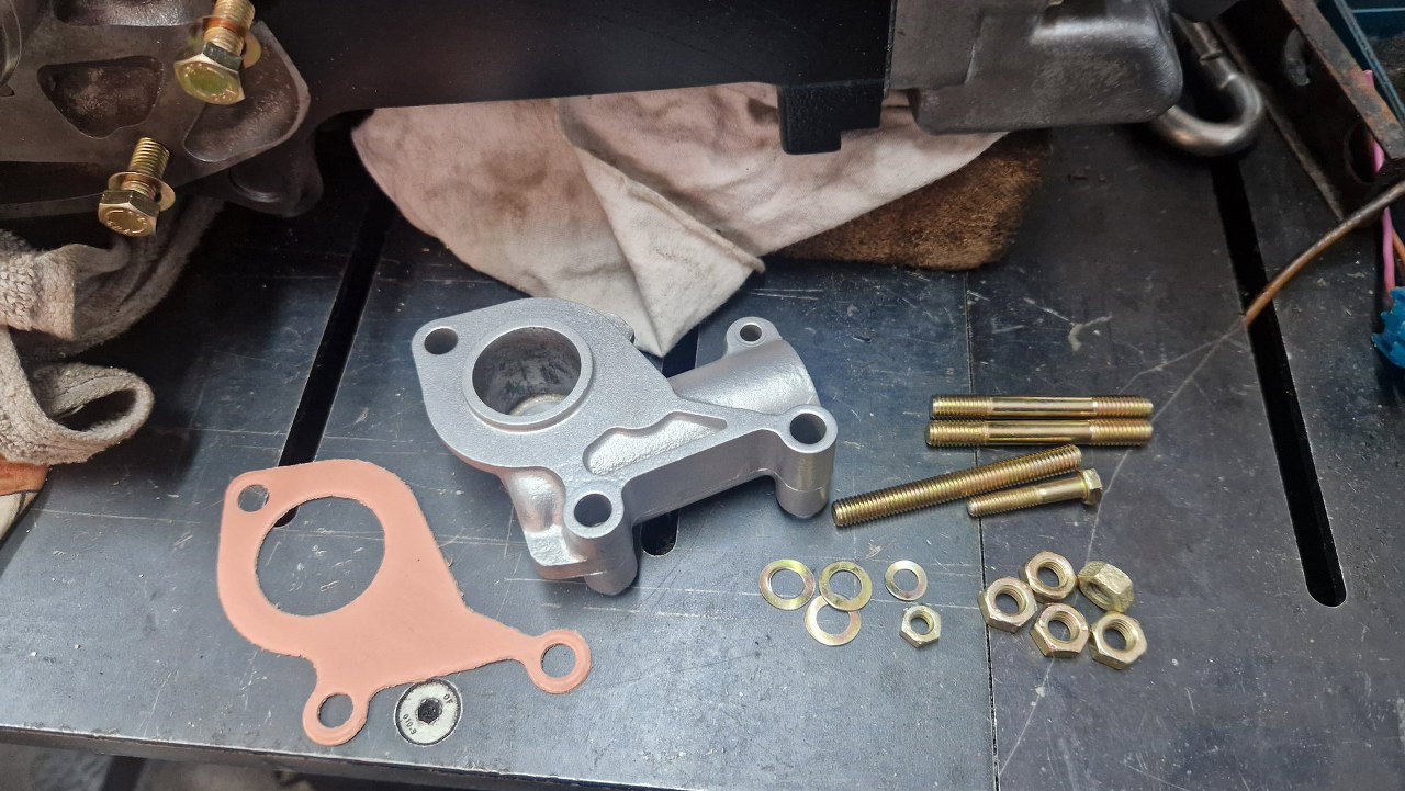 Przygotowałem też kolektor wodny. Ma on wiele króćców wodnych i miejsce na termostat.