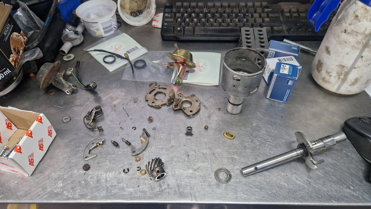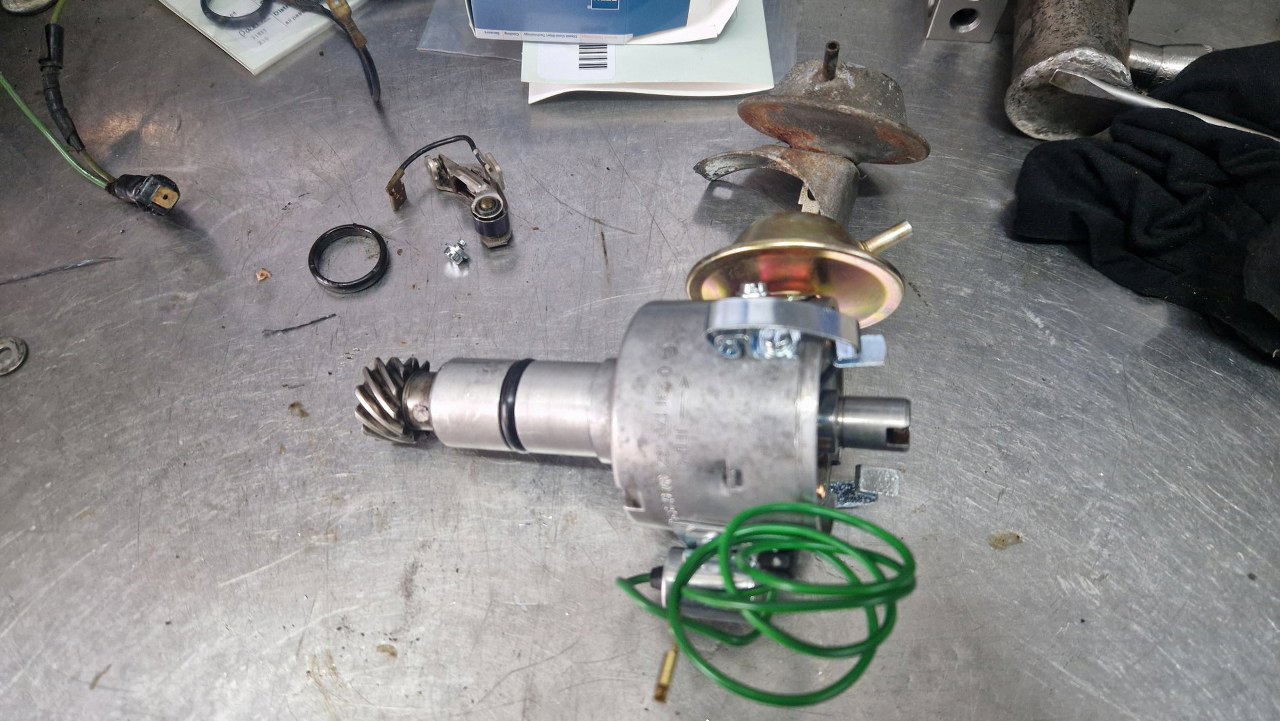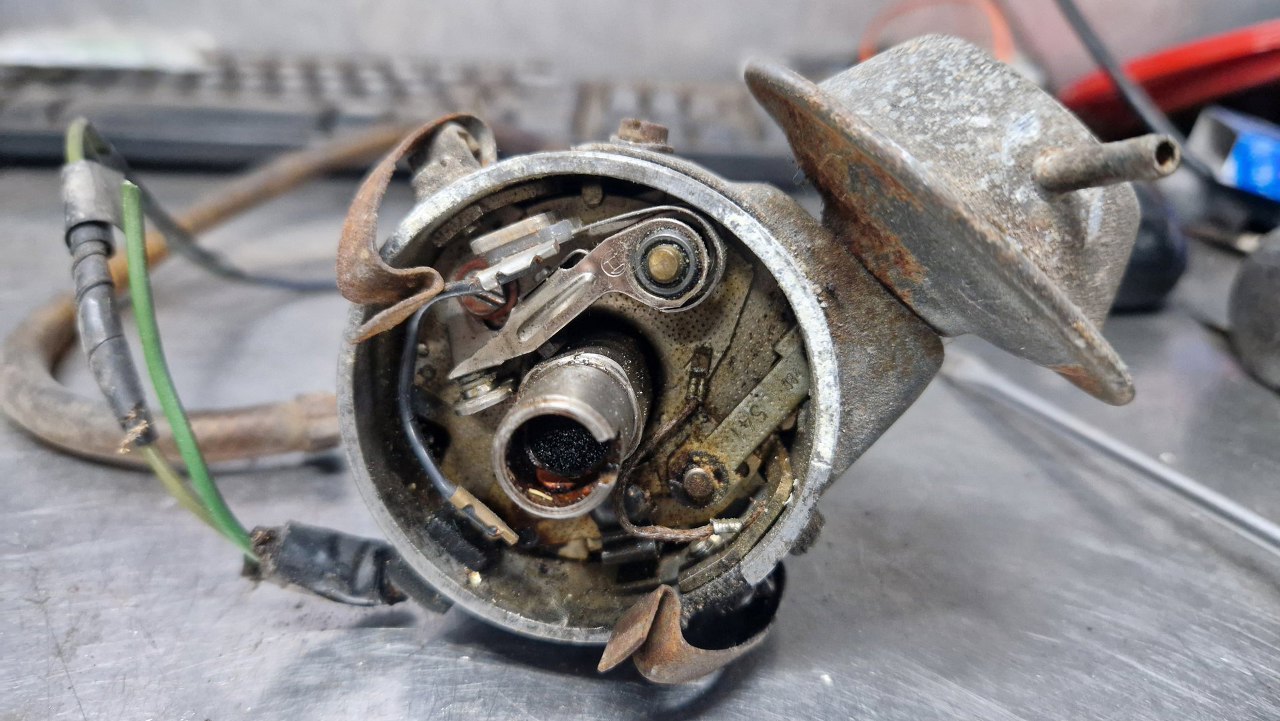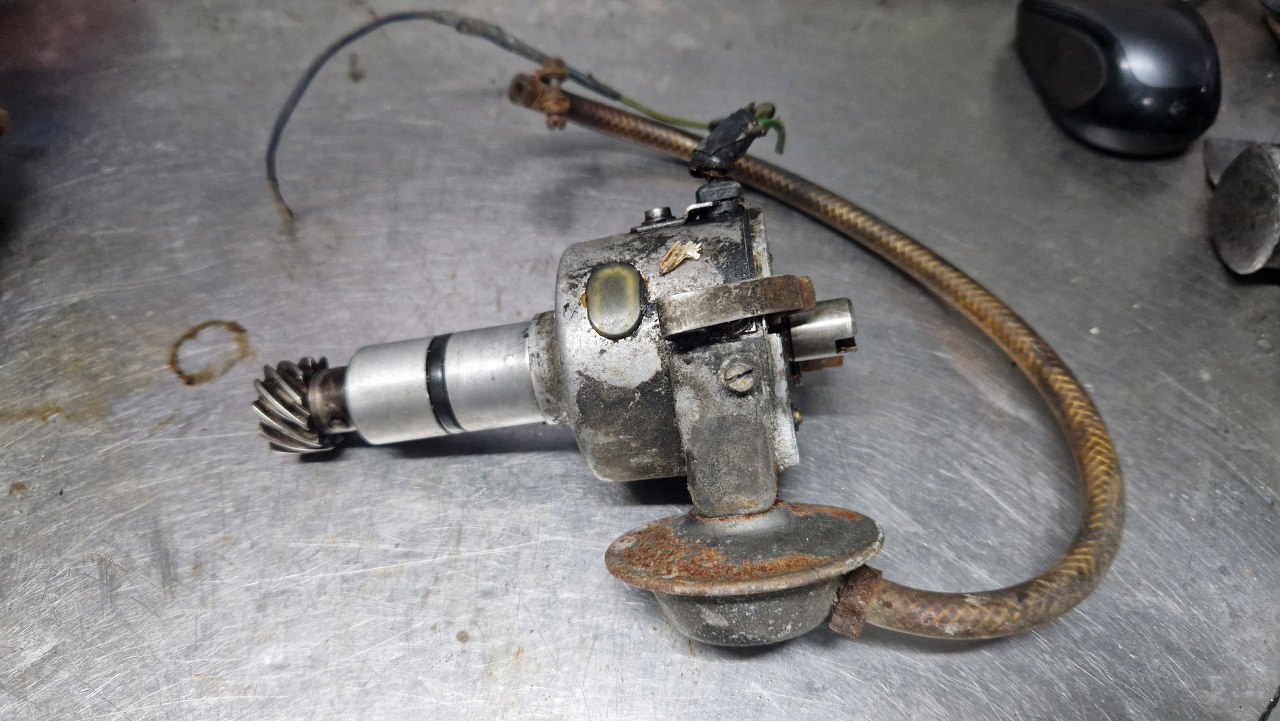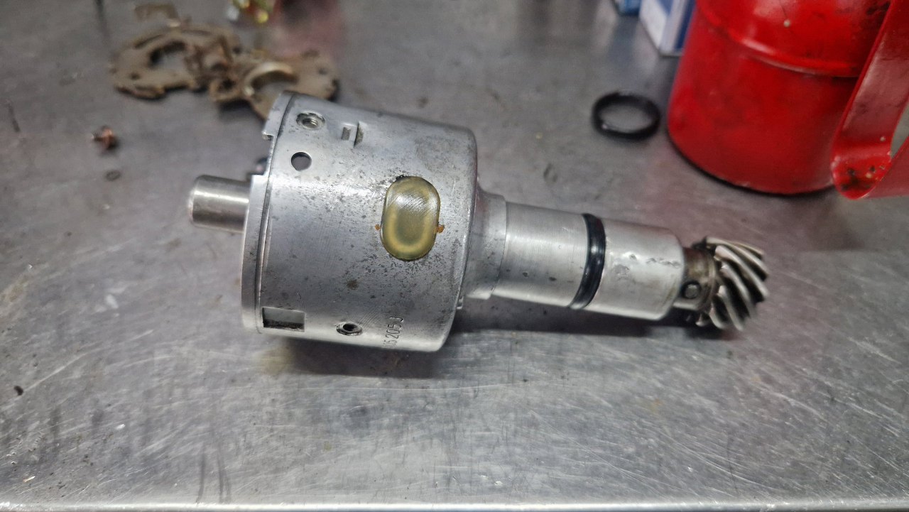 Nastęny w kolejce jest aparat zapłonowy. Ciut przypomina aparat z Garbusa, ale ma dłuższą część wchodzącą w silnik.