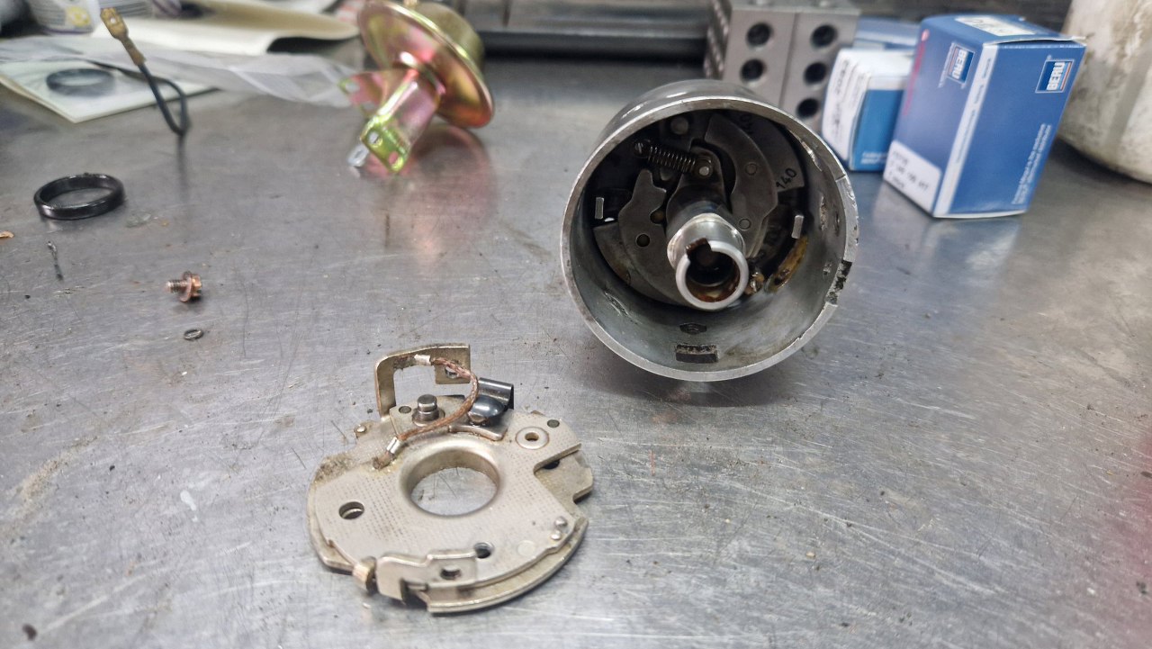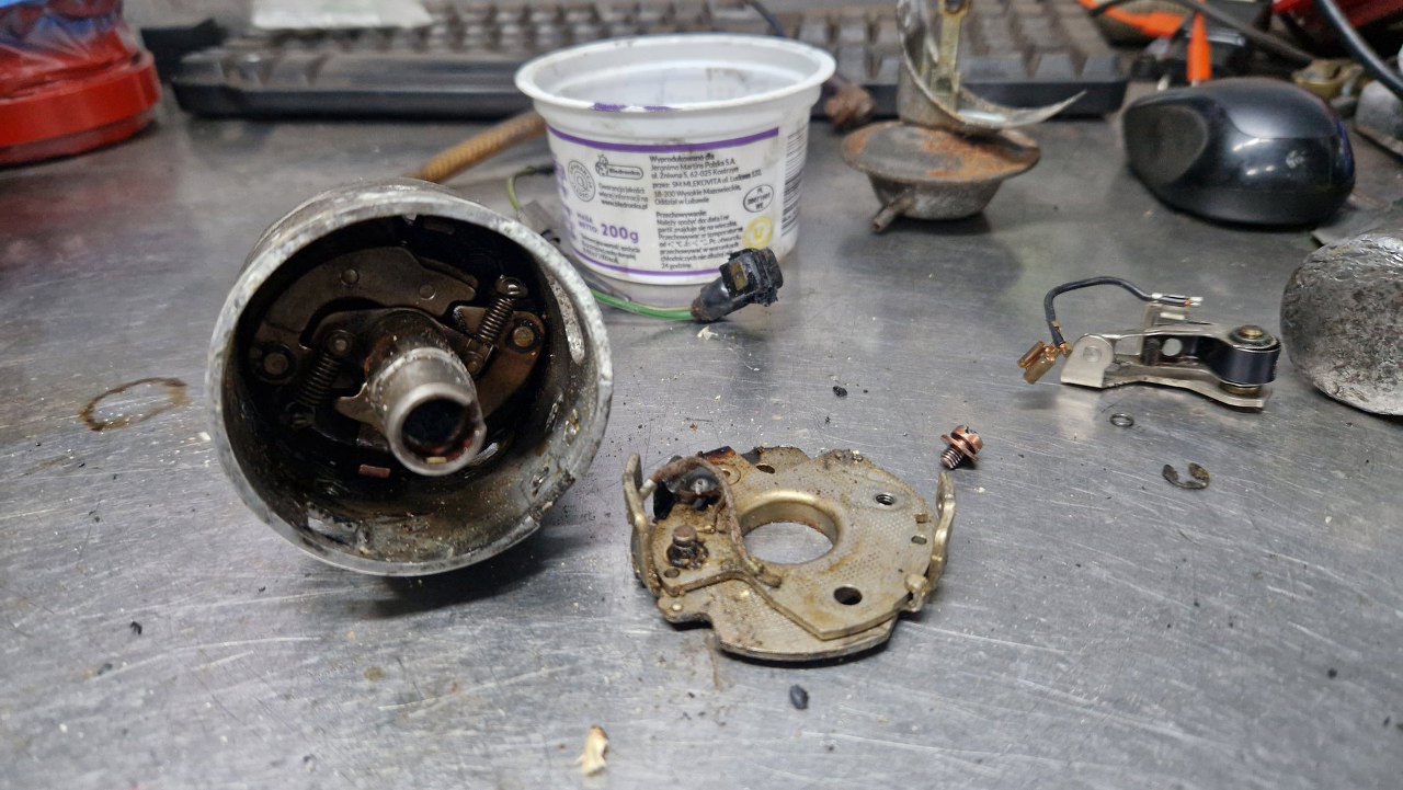 Wyjąłem płytki podciśnieniowego mechanizmu zmiany kąta wyprzedzenia zapłonu. Są mocno zapyziałe.
