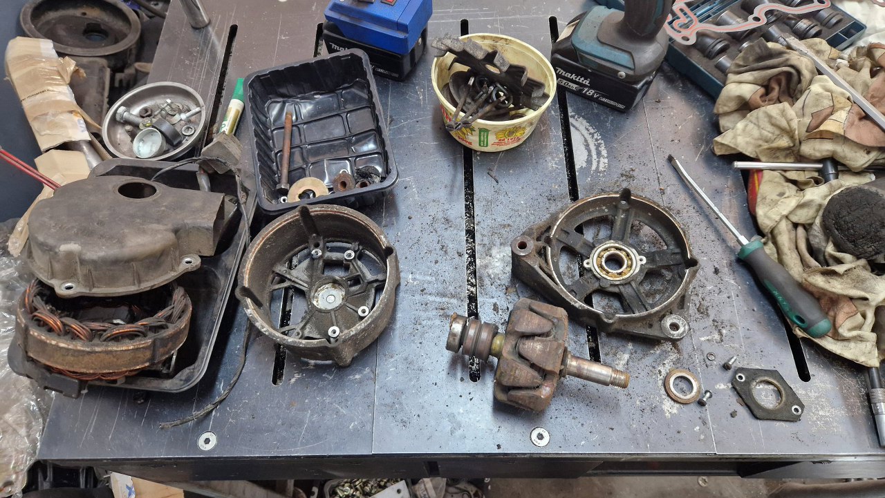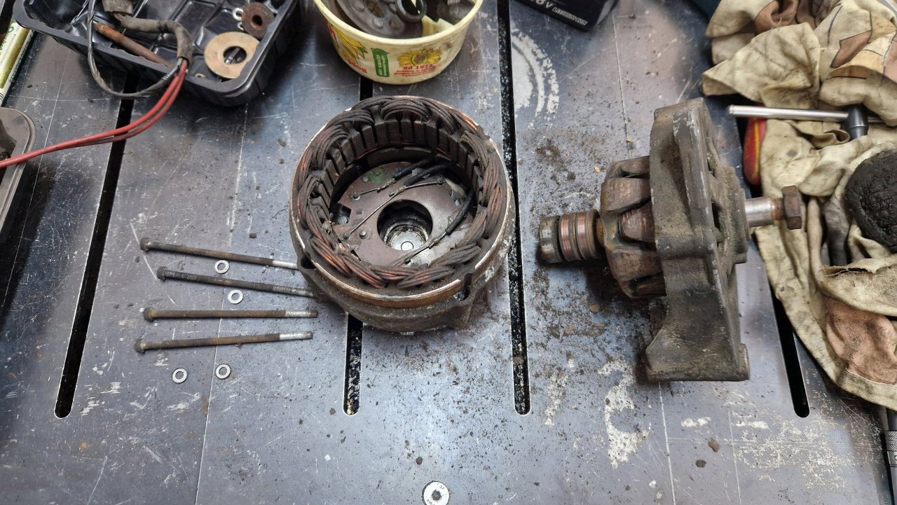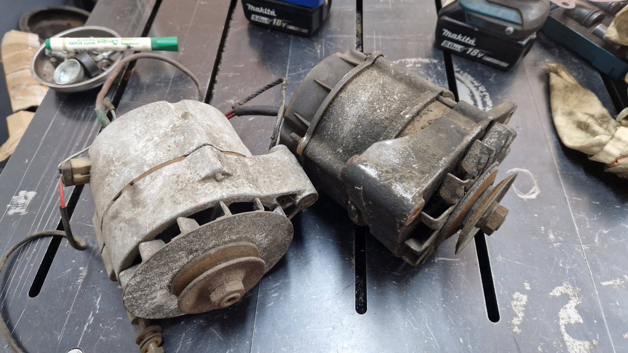 Właściciel przywiózł mi jeszcze alternatory, których wcześniej nie dostałem. Są dwa, nie wiadomo który jest właściwy. Mają dość podobne miejce mocowania, ale ucho na napinacz w nieco innym miejscu.