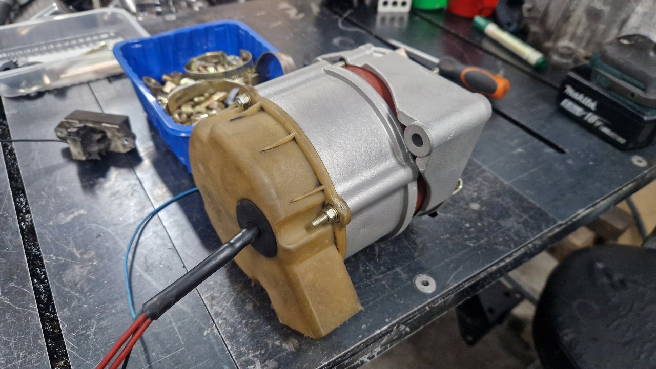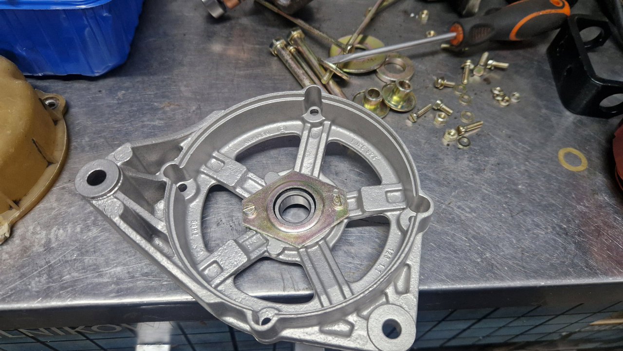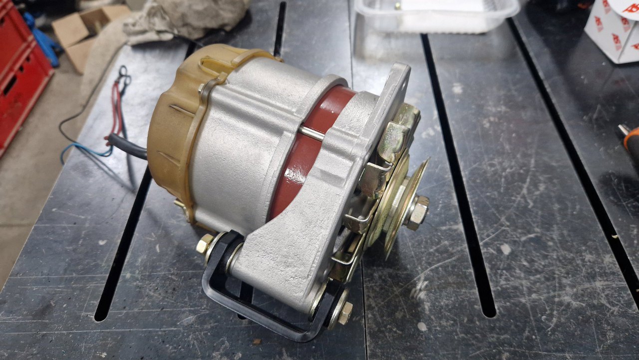 Uzupełniłem brakującą podkładkę i przykręciłem mocowanie do alternatora.