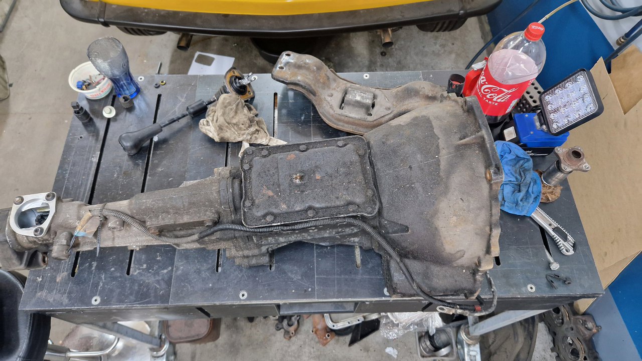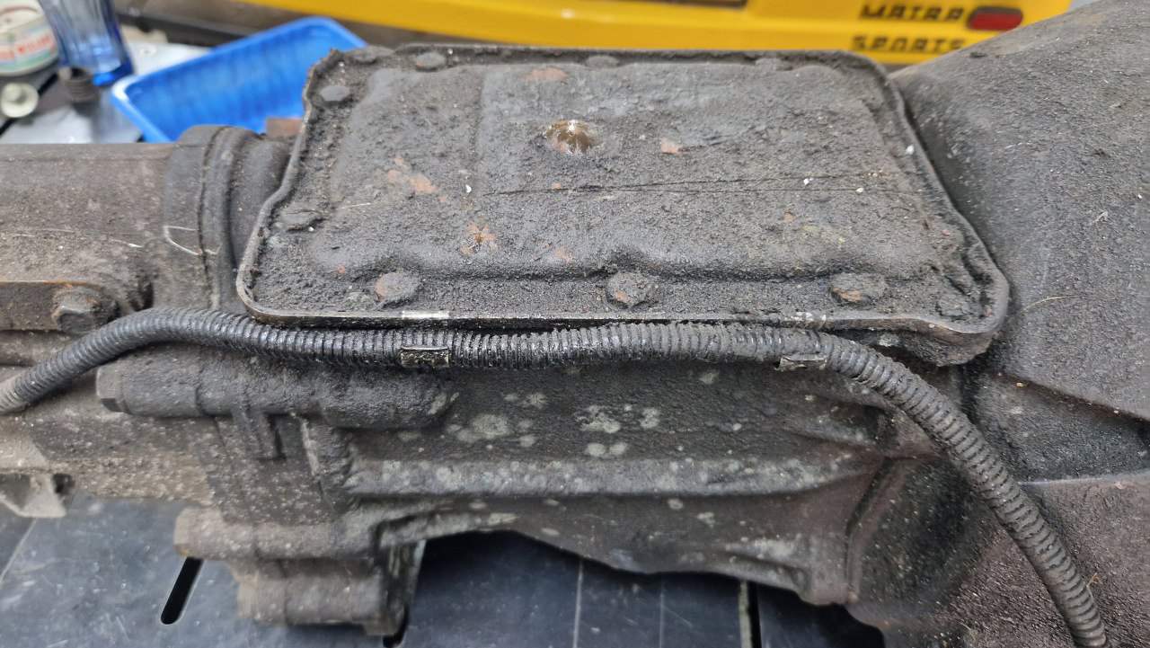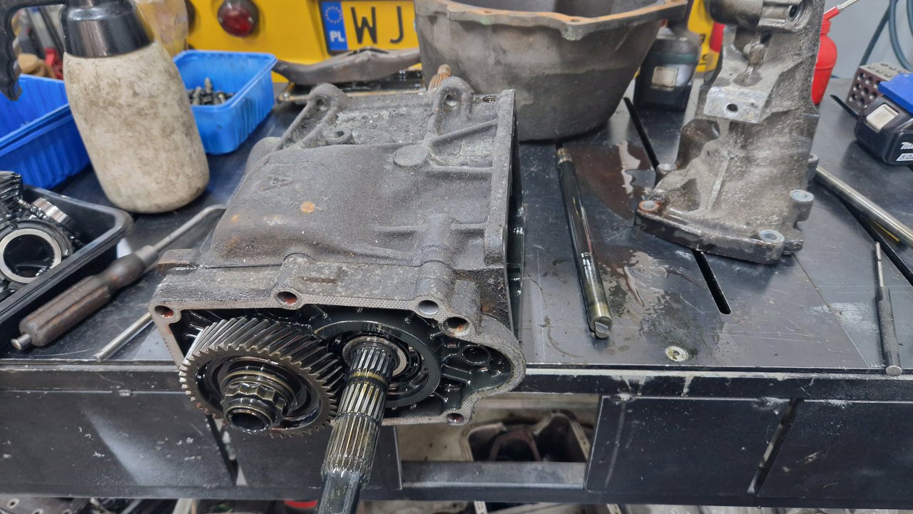 Zabieram się zatem za rozkładanie. Skrzynia na tyle elegancko wyjęta z dawcy, że została w niej nawet podpięta wiązka idąca do czujnika wstecznego biegu.