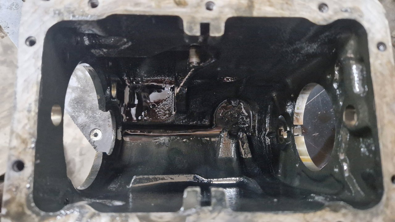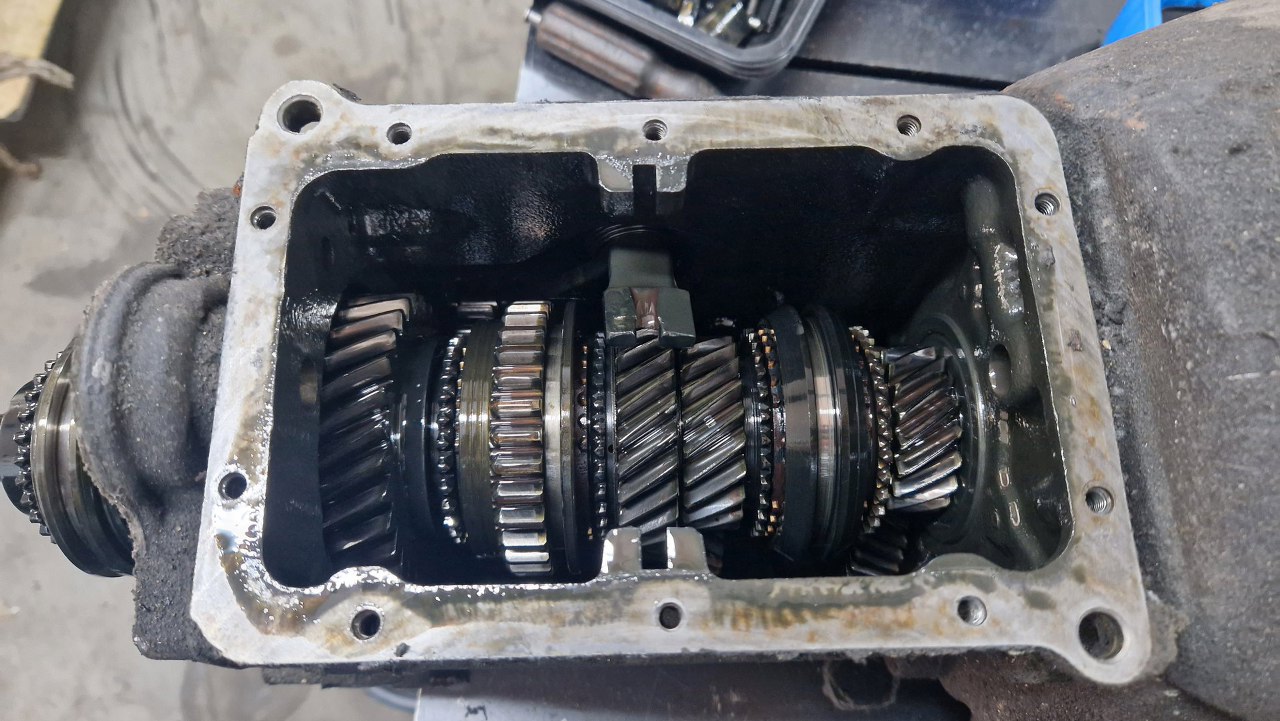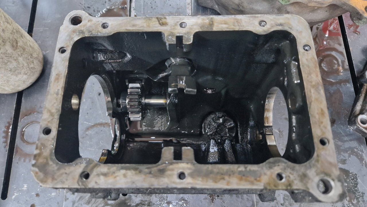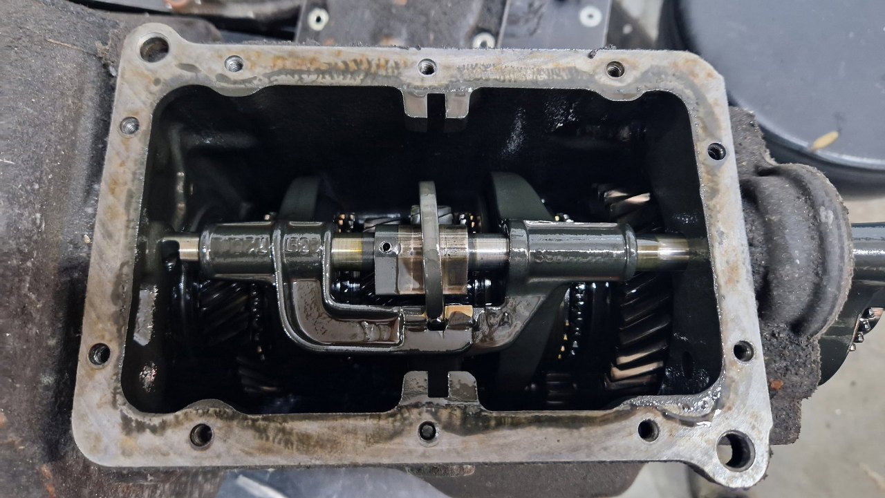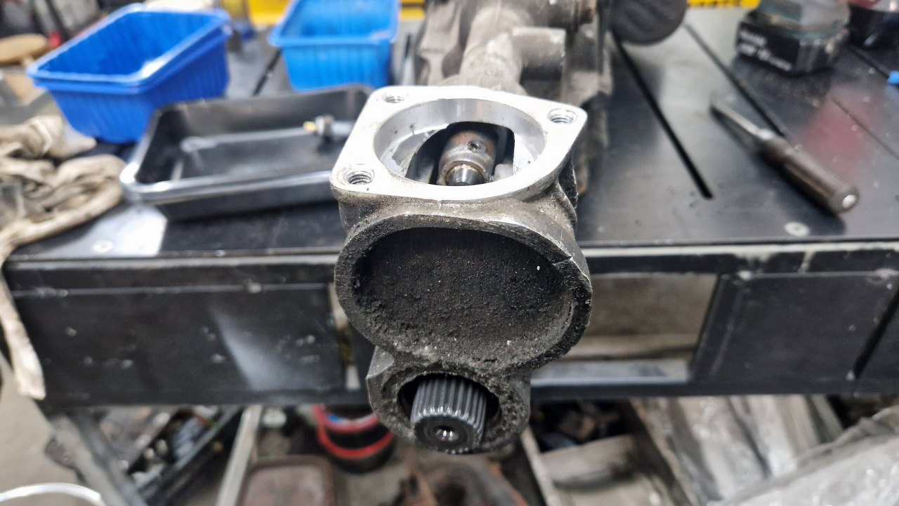 Potem otworzyłem pokrywę skrzyni. W środku trochę szlamu z przepracowanego oleju przekładniowego, ale ogólnie całkiem nieźle. Zęby wyglądają na całe i nie wytarte.