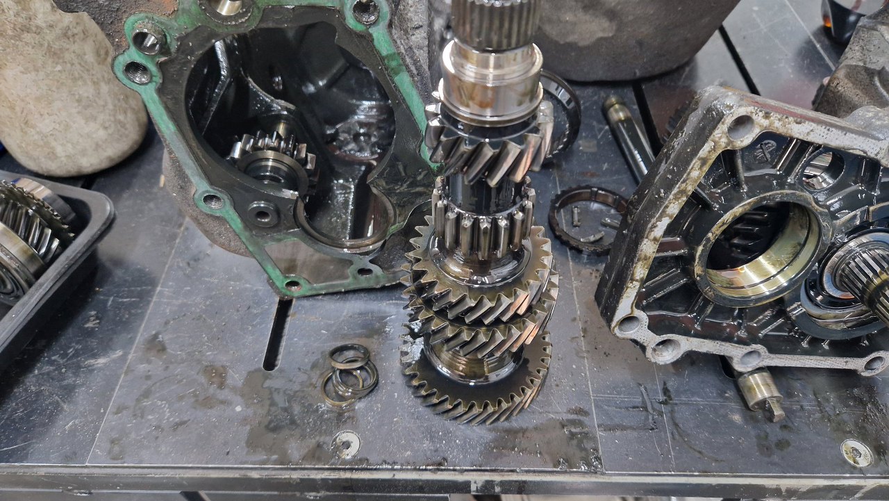 Zaczynam demontaż kół zębatych od tych na zewnątrz obudowy skrzyni, czyli od piątego biegu.