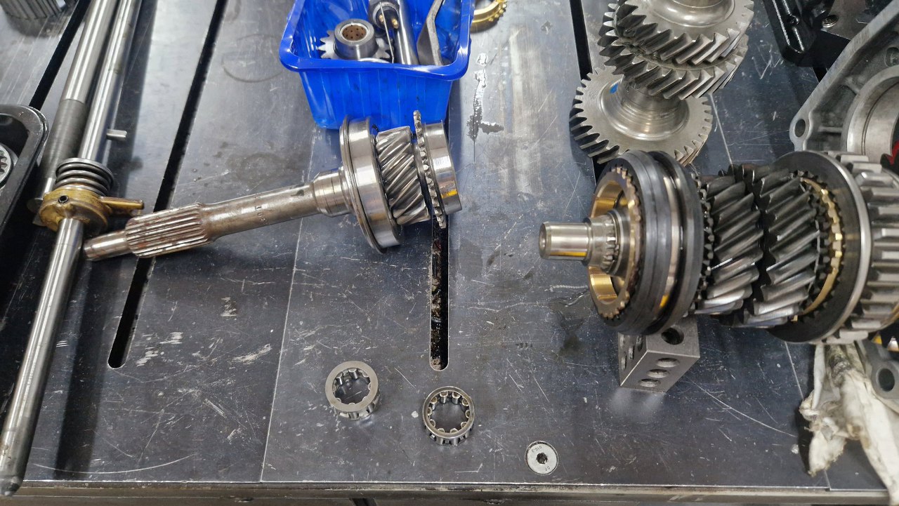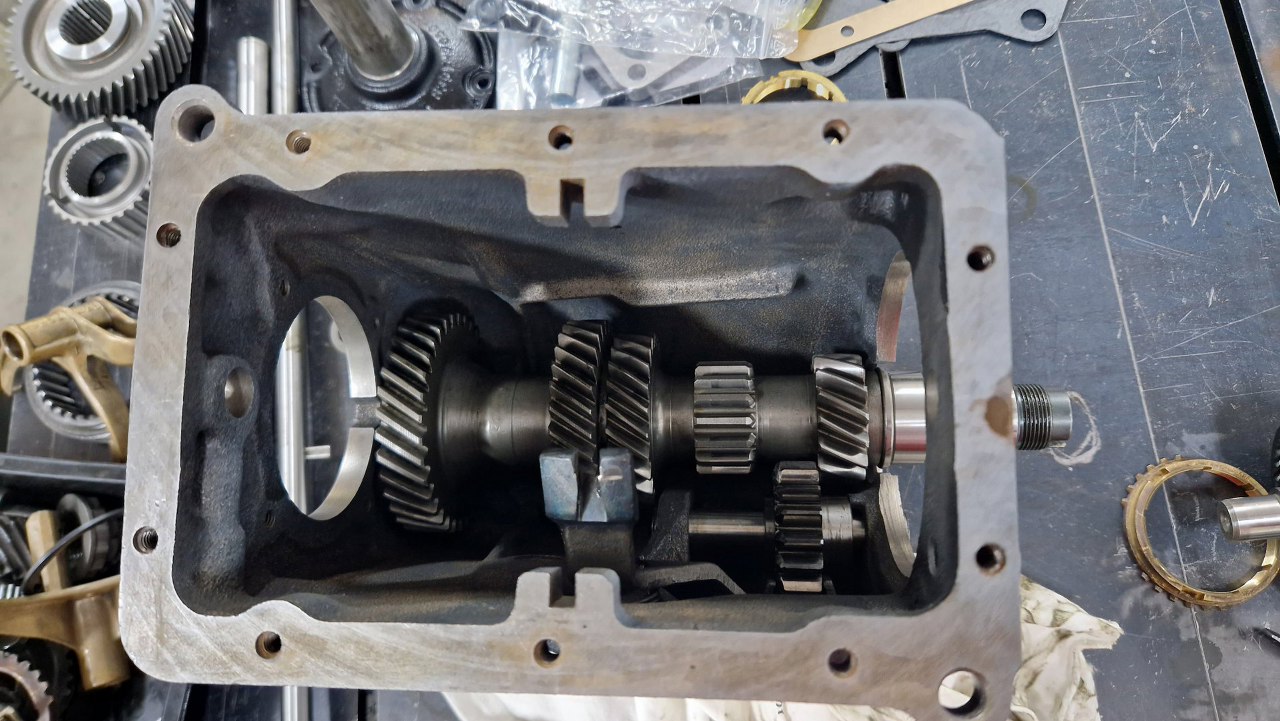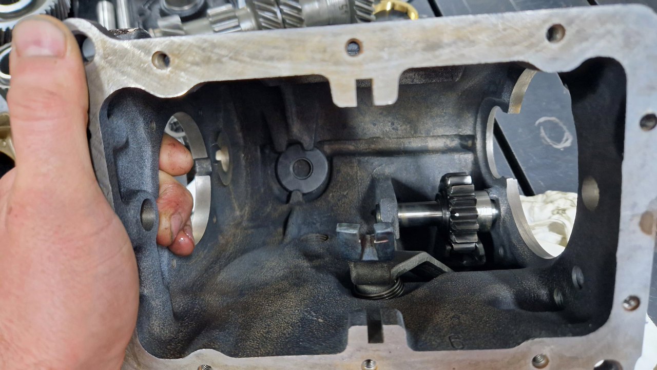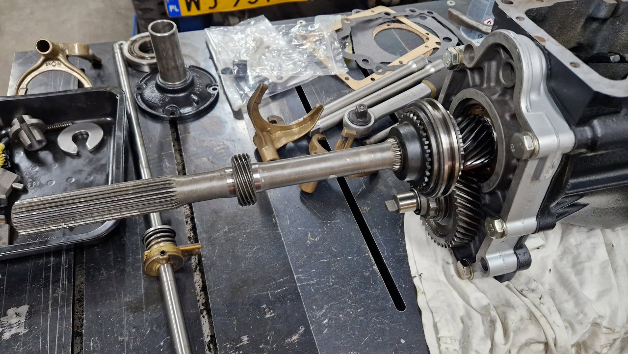 Potem skrzynię odwróciłem z powrotem i przygotowałem resztę części piątego biegu.
