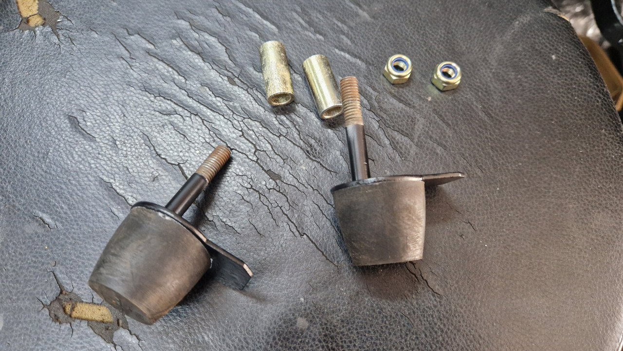 Wygrzebałem też z części do wyrzucenia odboje wahaczy. Są w niezłym stanie, tylko trochę były zardzewiałe. Wyczyściłem je.