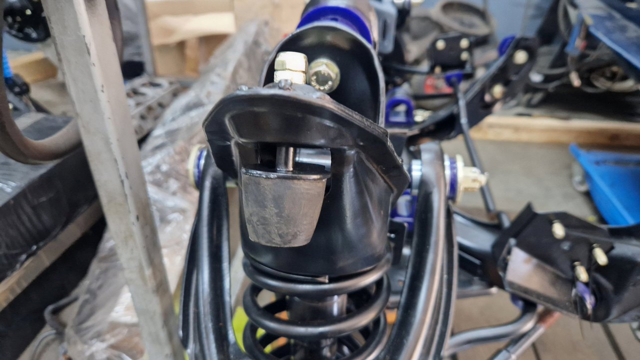 Mogłem to już teraz zainstalować, ale nie skręcam na gotowo - to zrobimy dopiero po postawieniu samochodu na koła. Przed tym stabilizator się układa tak, że gumki się krzywią.