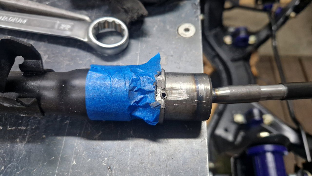 Z drugiej strony złożyłem drążek kierowniczy i zabezpieczyłem go przed odkręcaniem.