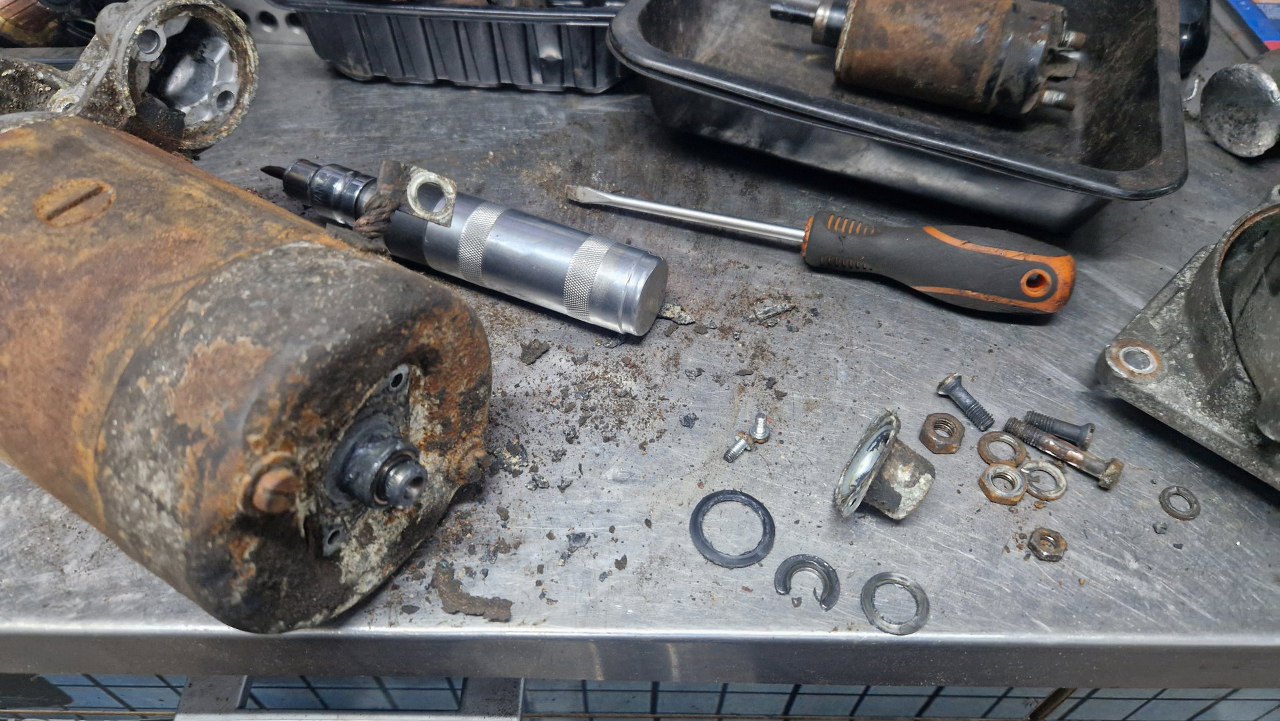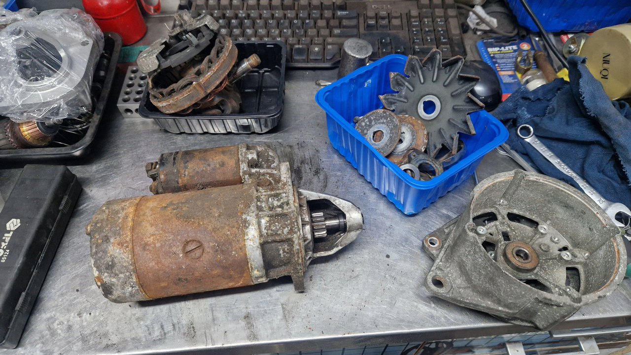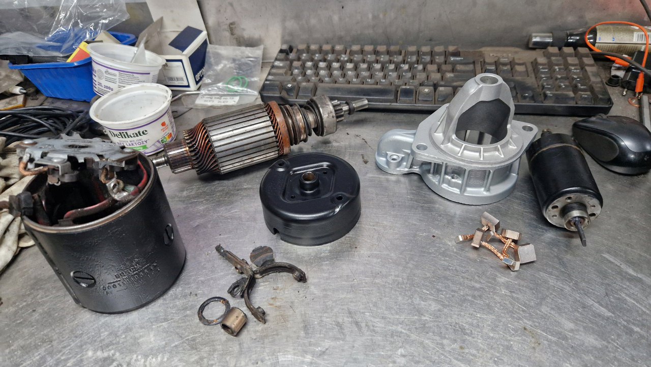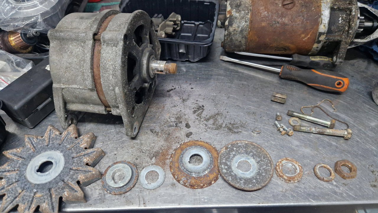 Jak widać po częściach alternatora, równolegle szykowałem rozrusznik.