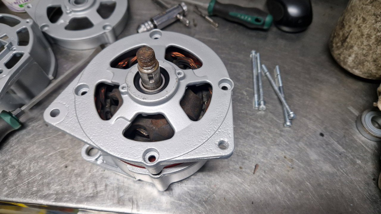 W wirniku wymieniłem ślizgi szczotek. Raz kiedyś stwierdziłem, że nie chcę tego robić i oddałem alternator do regeneracji. Wrócił ze starymi ślizgami, stoczonymi na tokarce na mniejszą średnicę, żeby wydawało się, że są nowe. Od tej pory już nie zwracam uwagi, czy mi się chce, tylko robię...