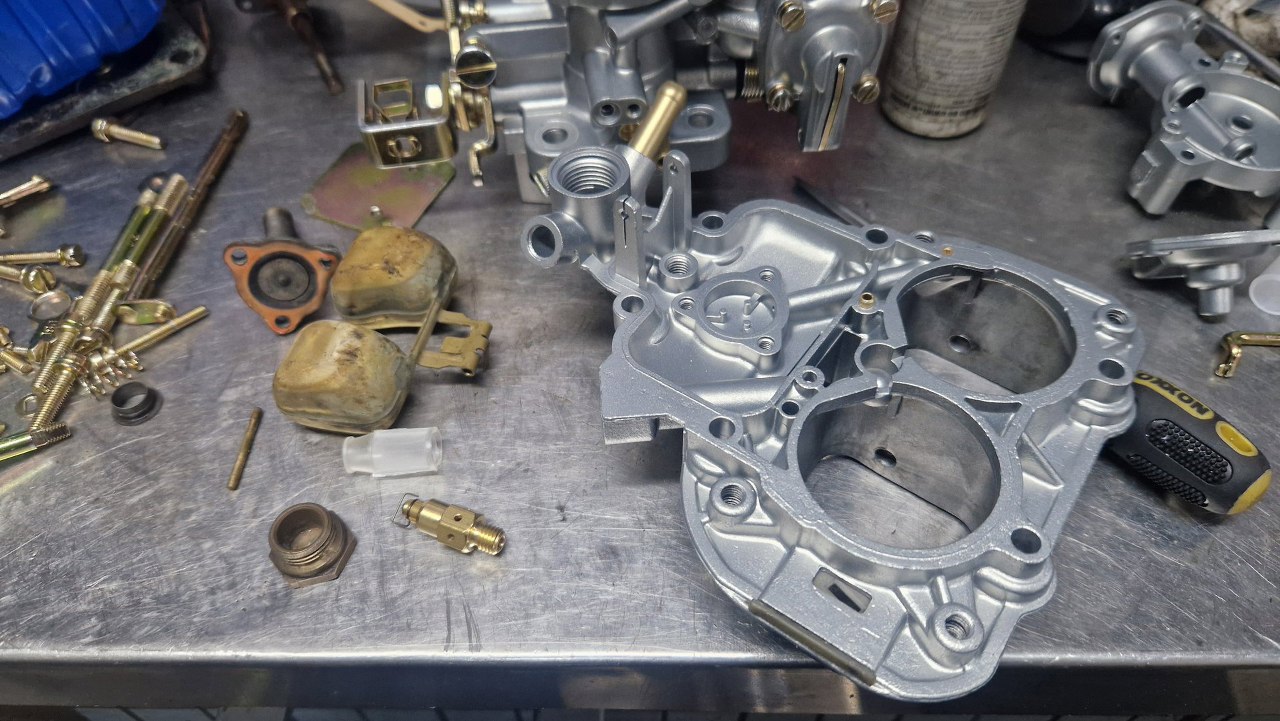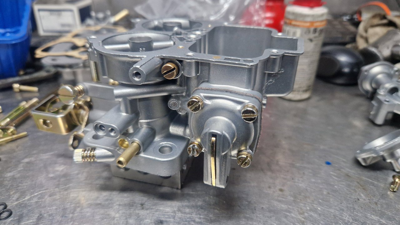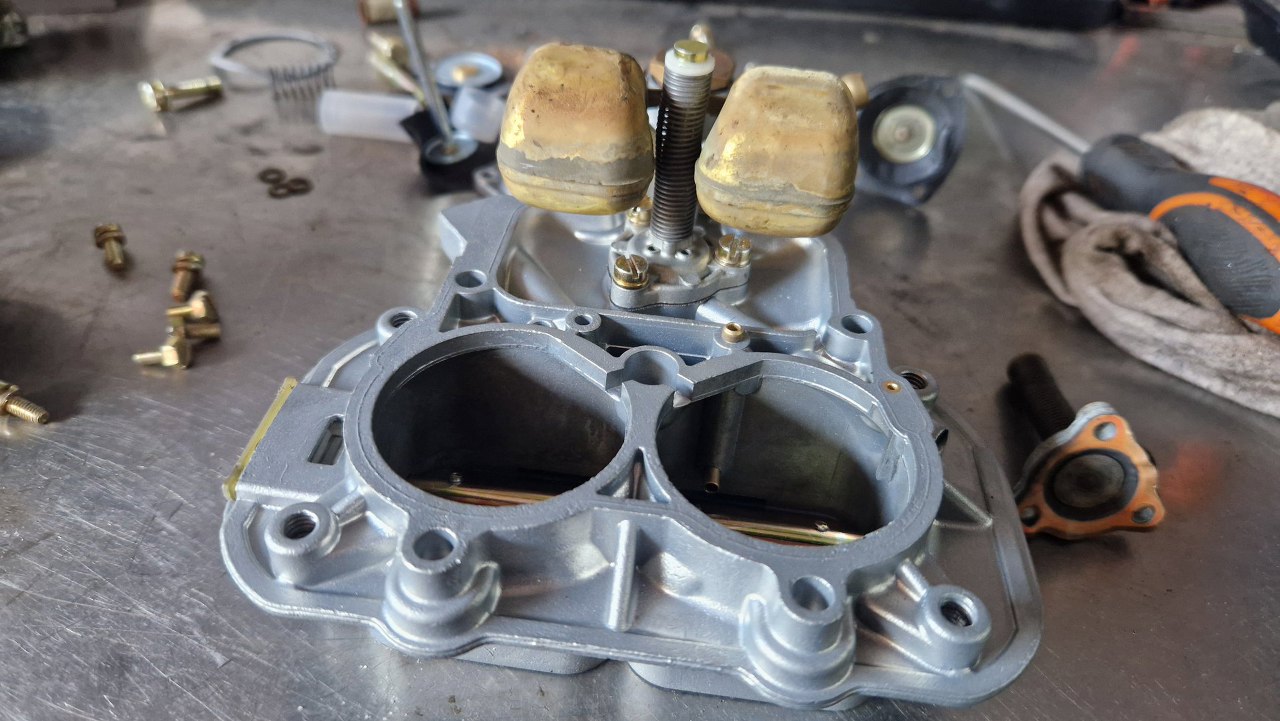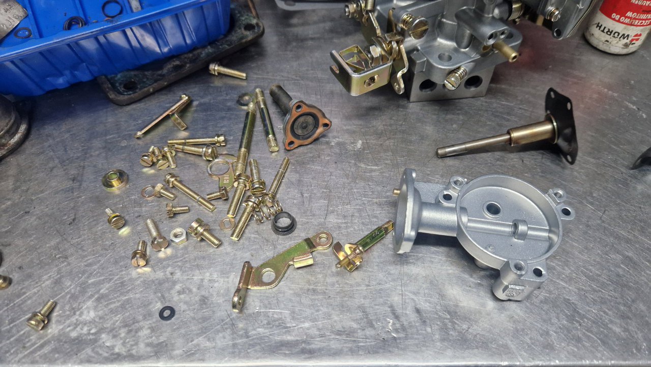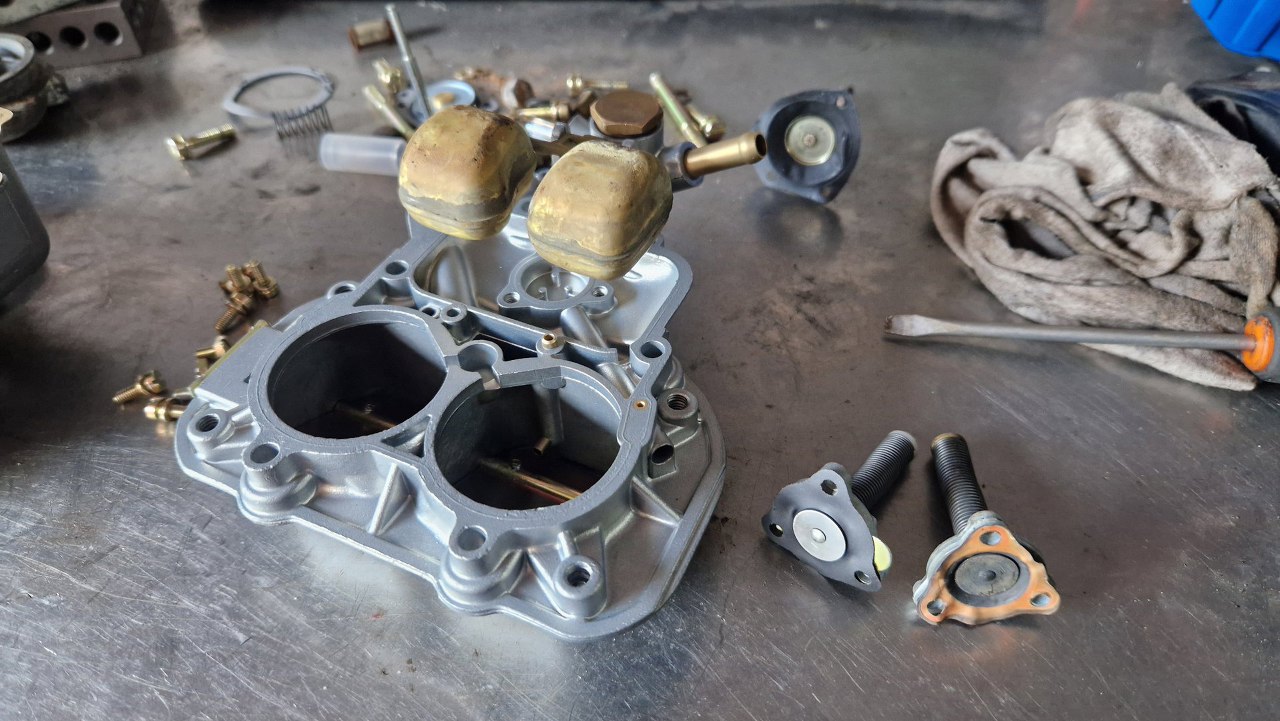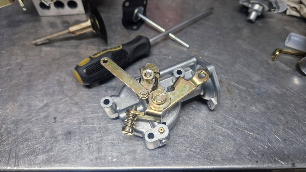 Przykręciłem go do korpusu gaźnika. Brakuje mi jeszcze odpowiedniej membrany ssania, bo w zestawie naprawczym była ta bardziej popularna. W tym gaźniku jest nieco inna.