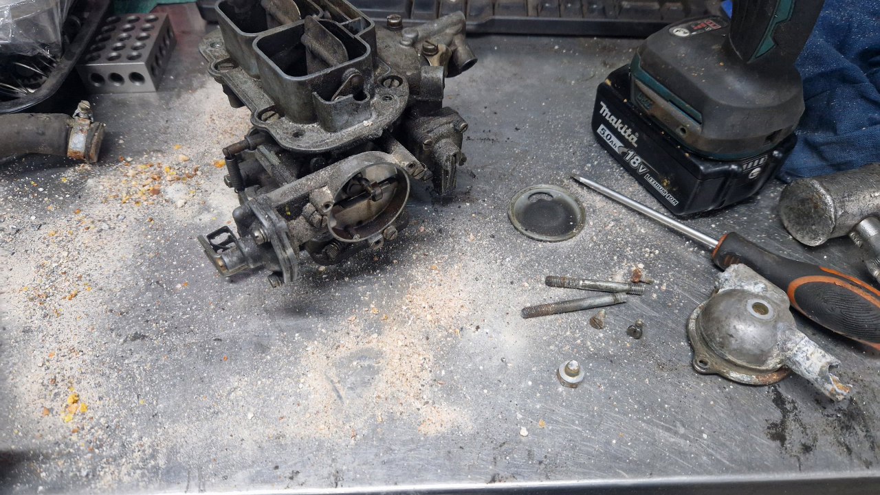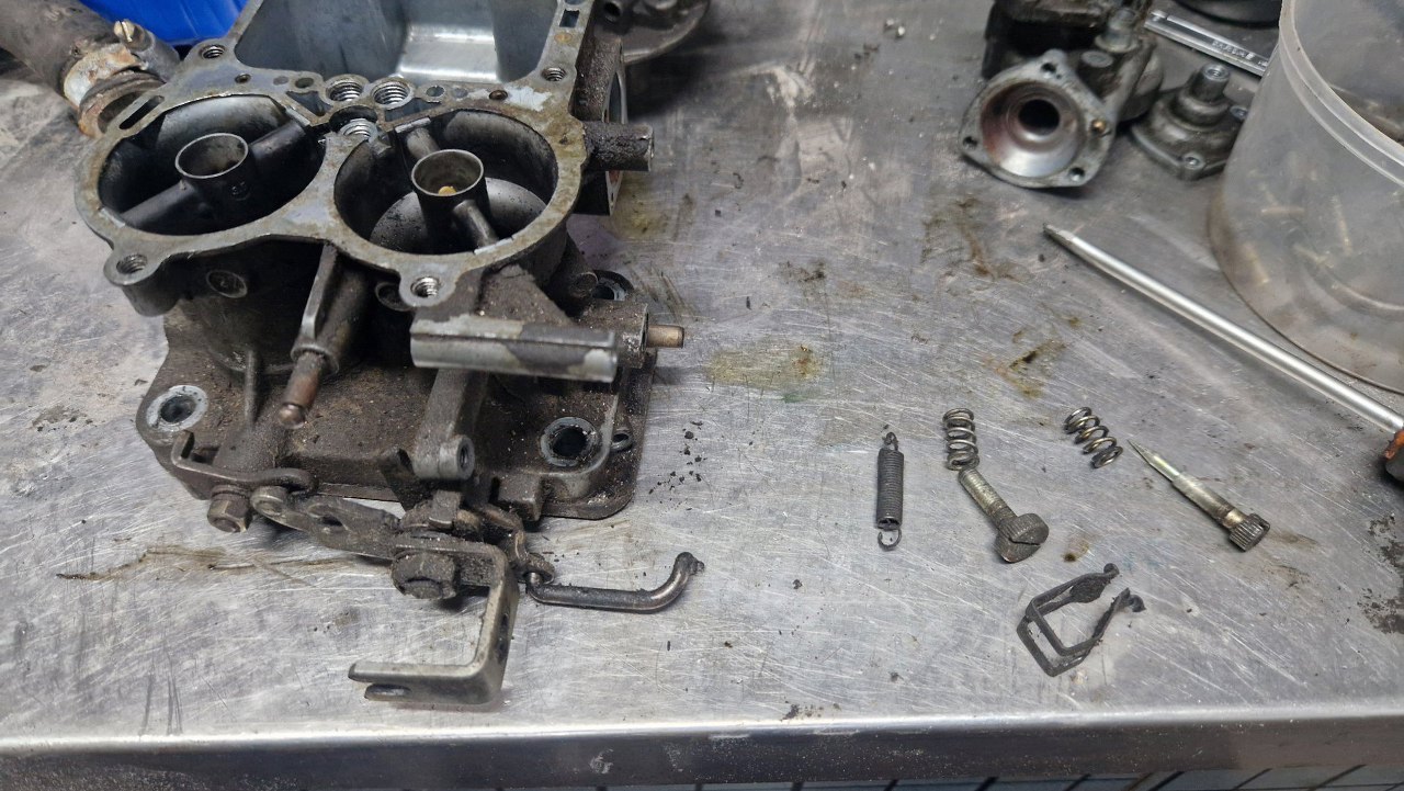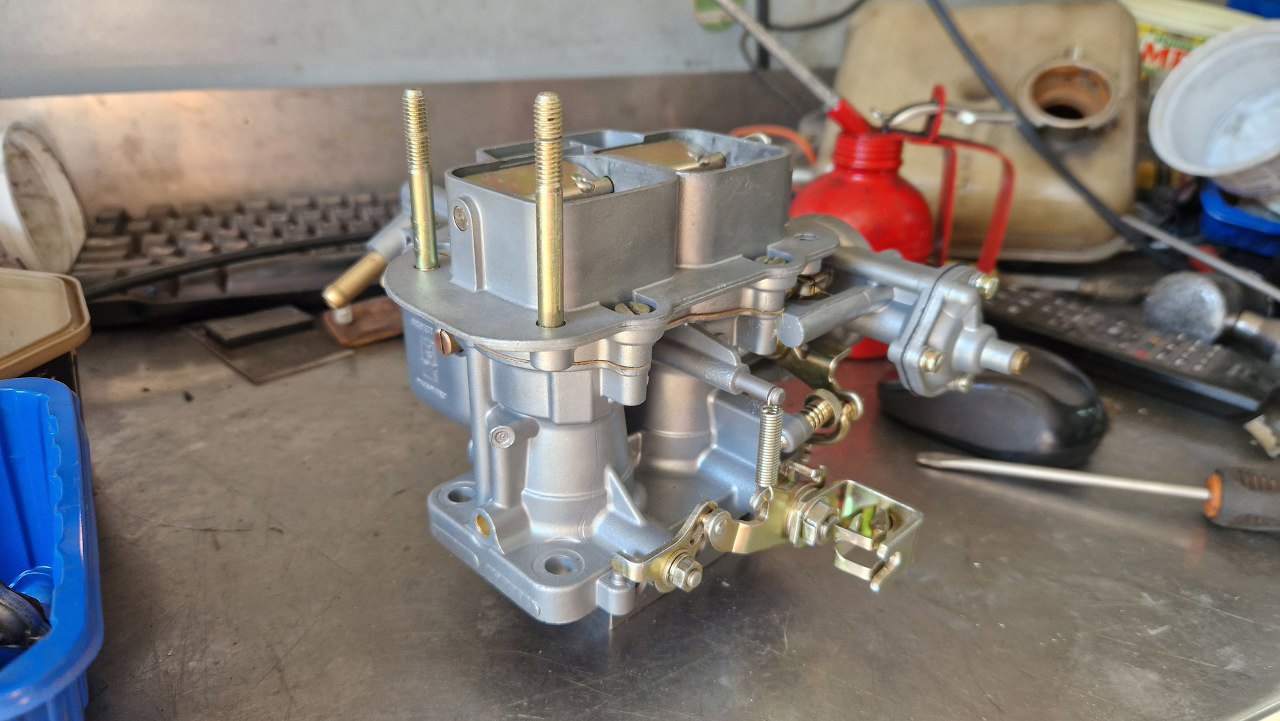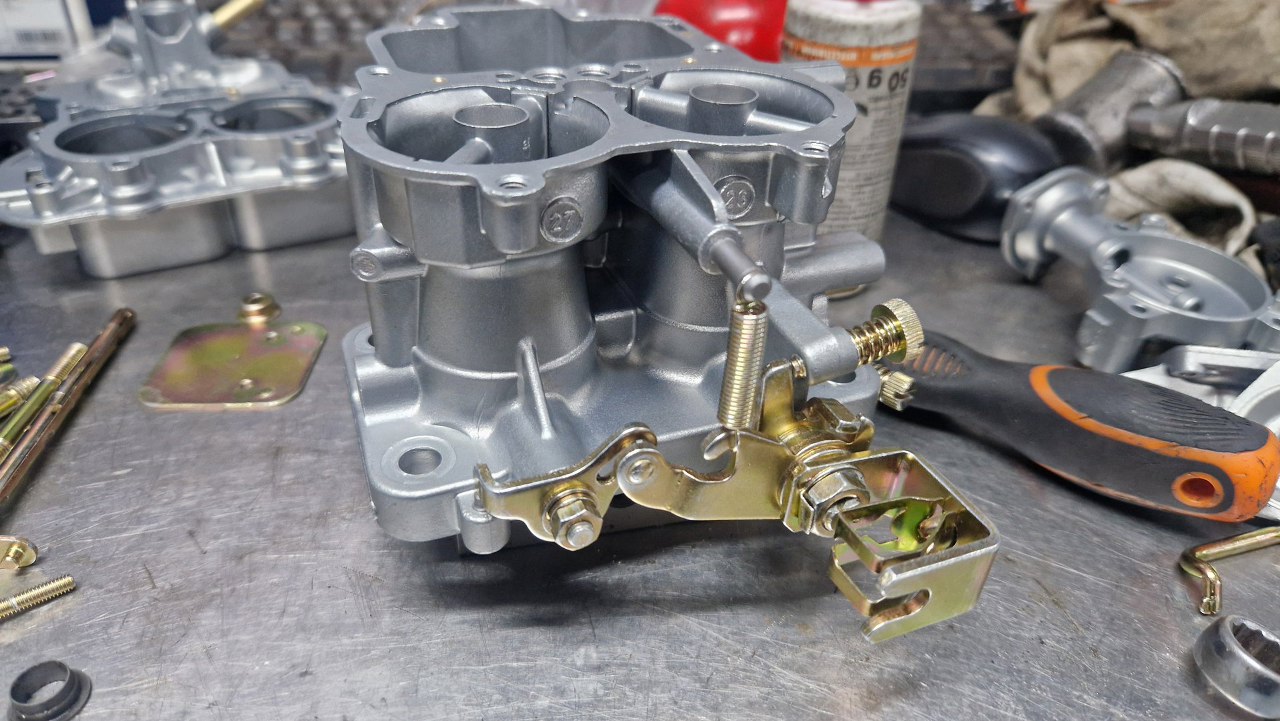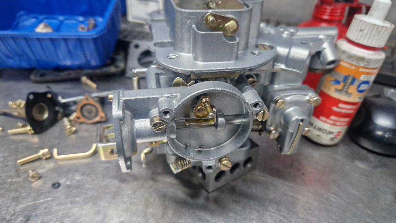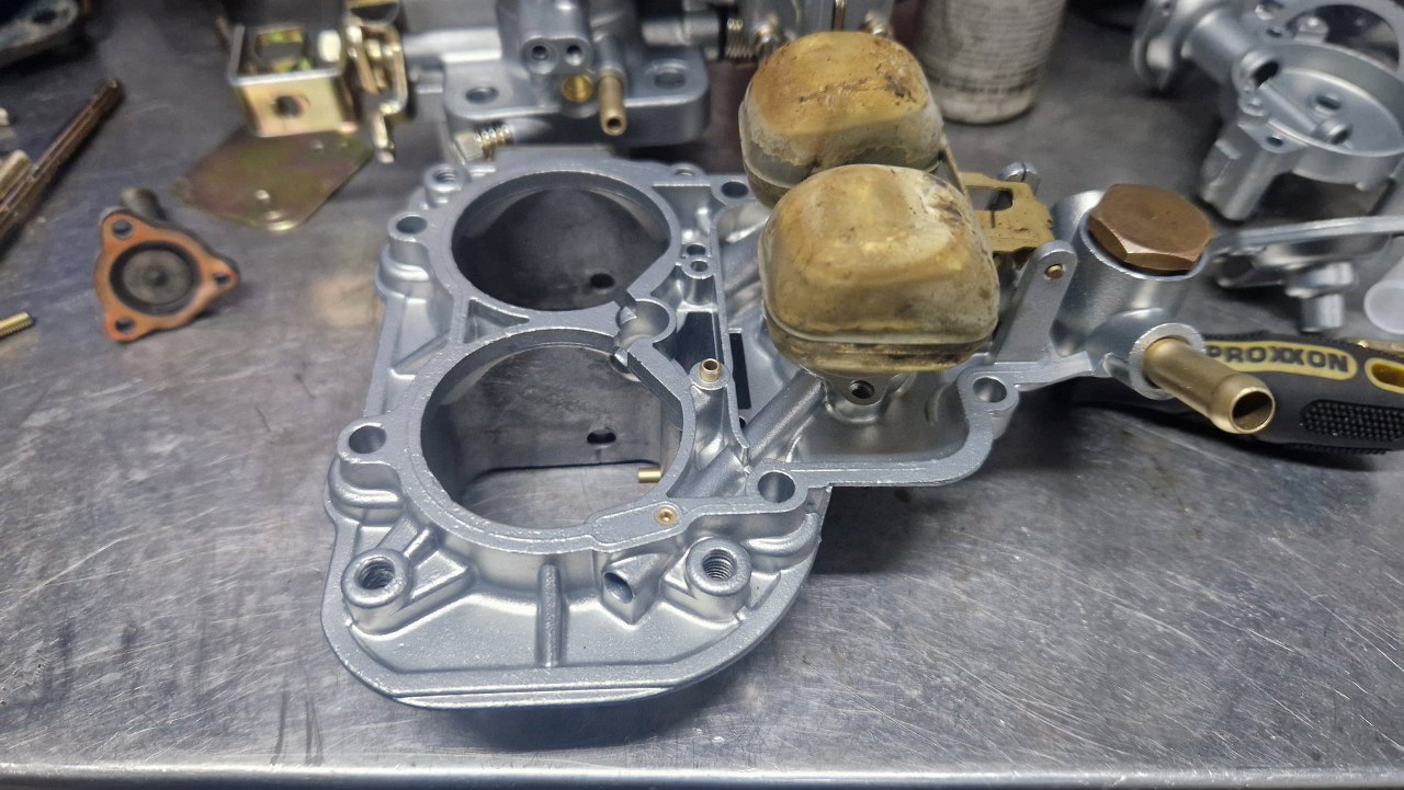 Przykręciłem go do korpusu gaźnika. Brakuje mi jeszcze odpowiedniej membrany ssania, bo w zestawie naprawczym była ta bardziej popularna. W tym gaźniku jest nieco inna.