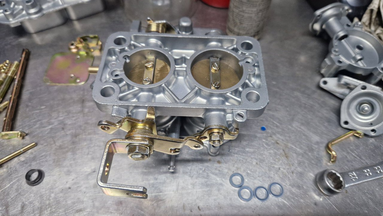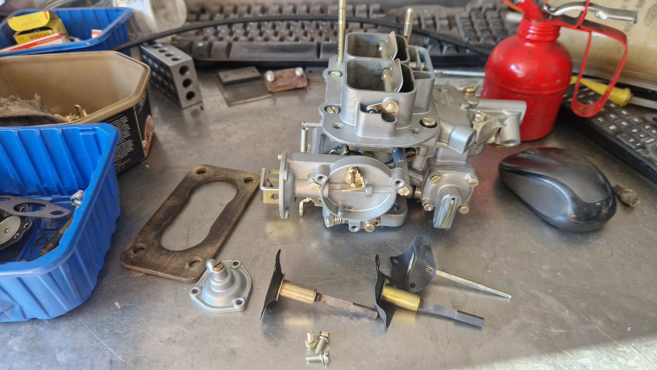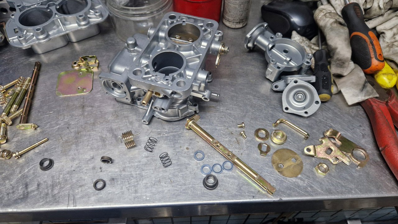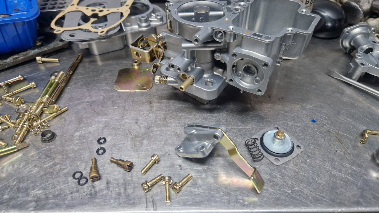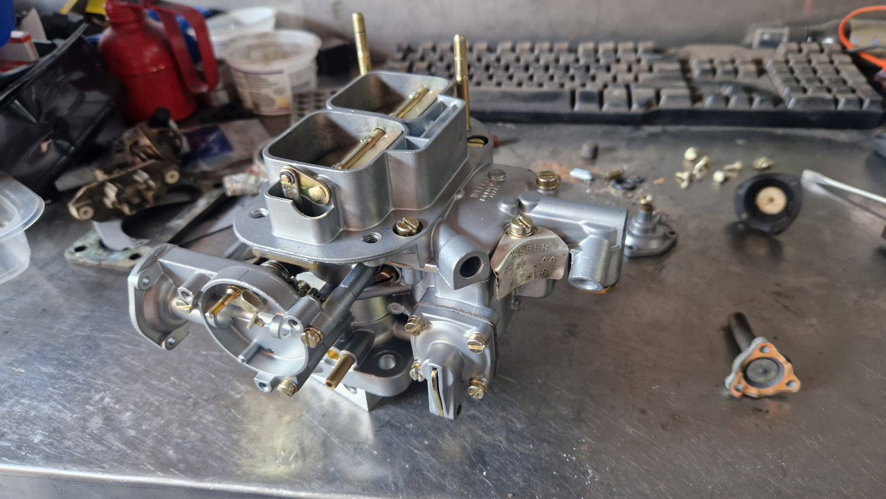 Z osprzętu silnika został już w zasadzie tylko gaźnik. Rozłożyłem go oczywiście razem z resztą silnika już na początku, ale trochę czekałem na części, więc dopiero niedawno go poskładałem. Gaźnik w 1.6 GT to Weber 32/36 DGAV.