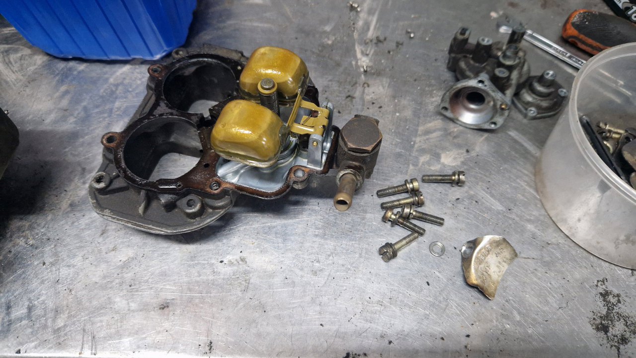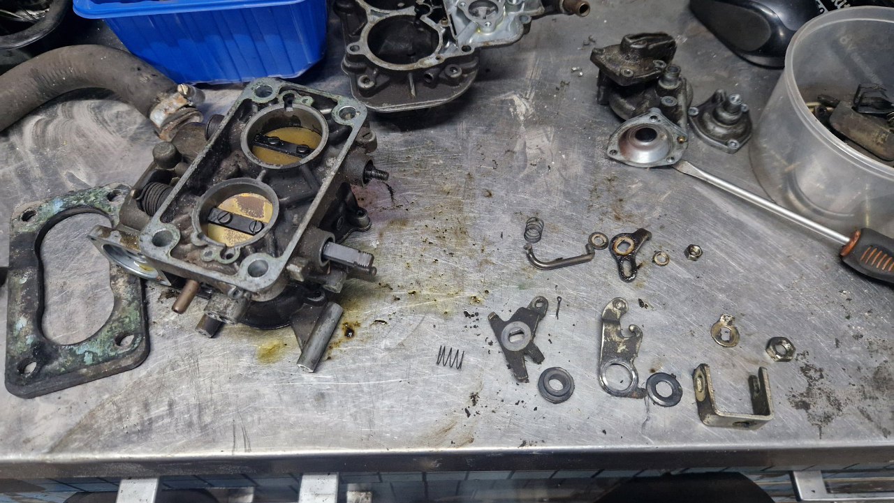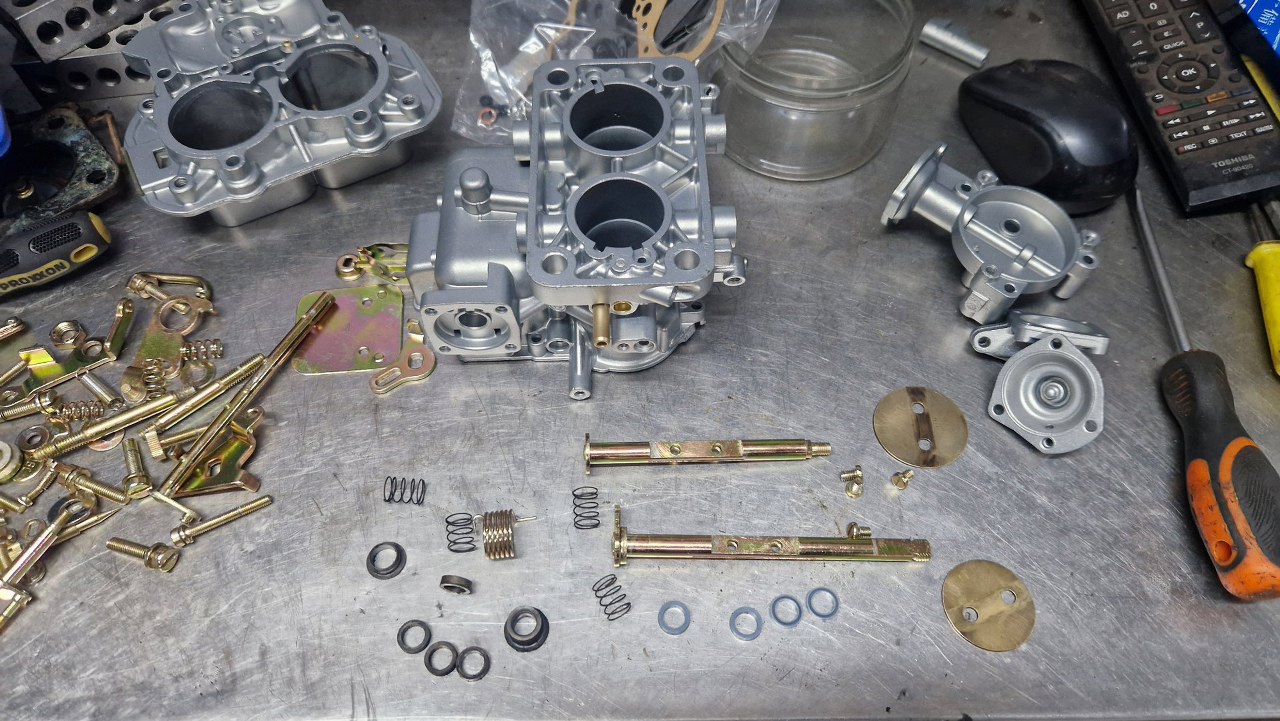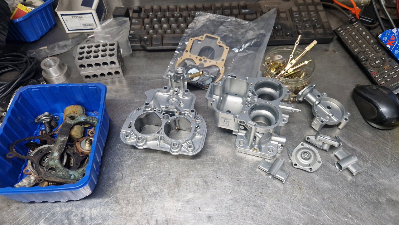 Z osprzętu silnika został już w zasadzie tylko gaźnik. Rozłożyłem go oczywiście razem z resztą silnika już na początku, ale trochę czekałem na części, więc dopiero niedawno go poskładałem. Gaźnik w 1.6 GT to Weber 32/36 DGAV.