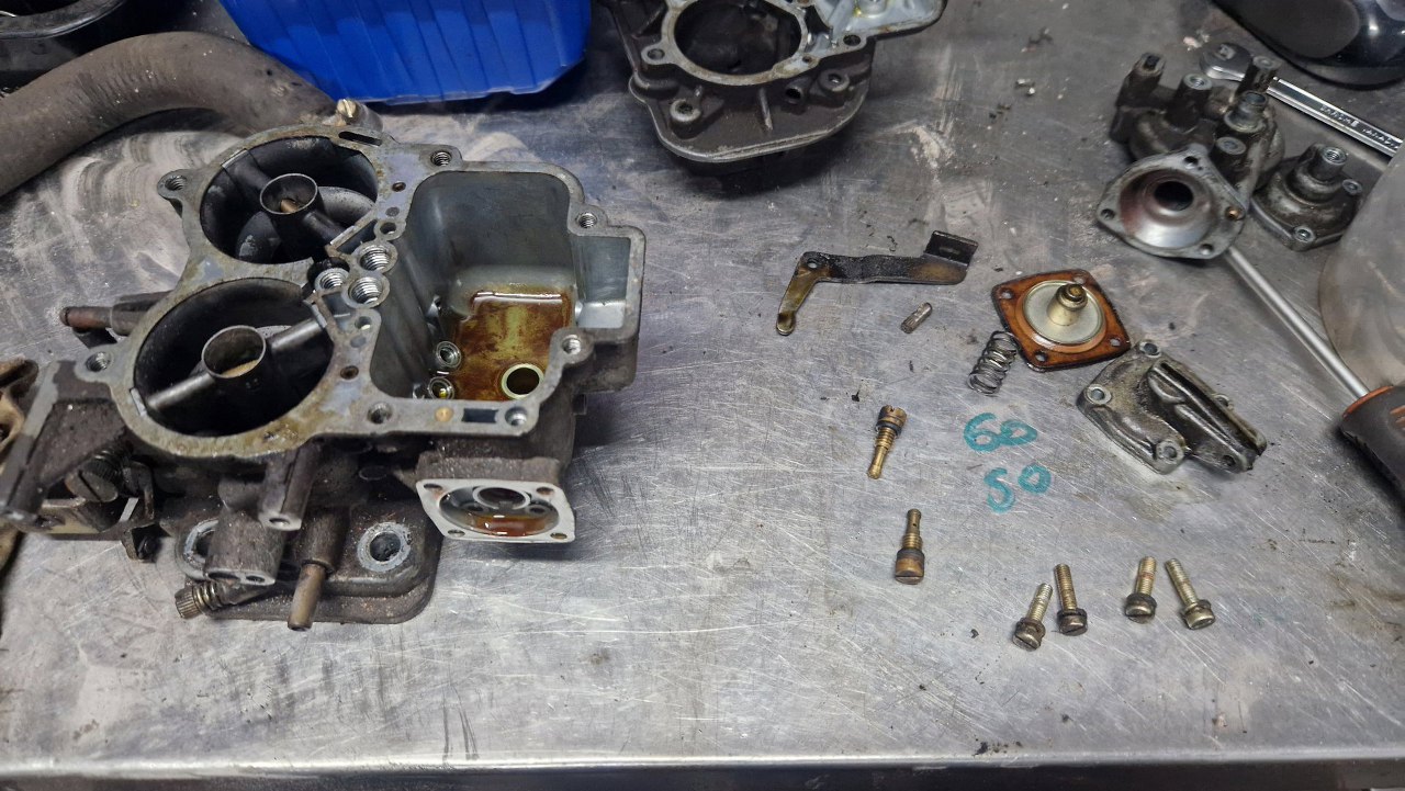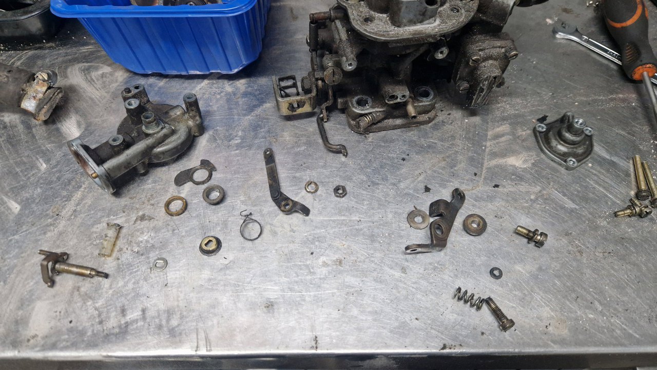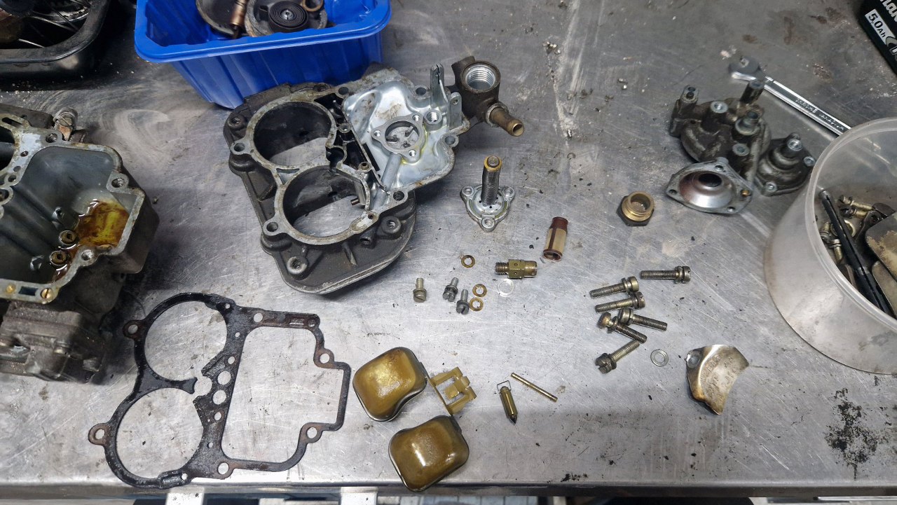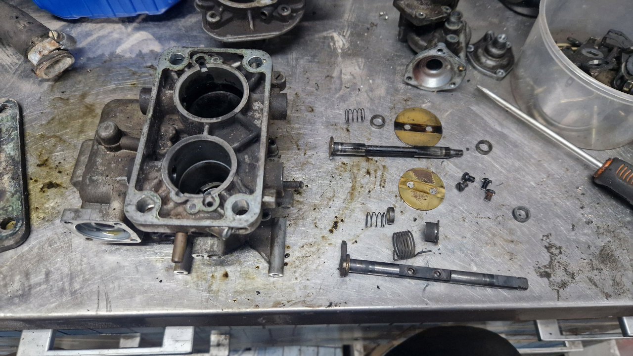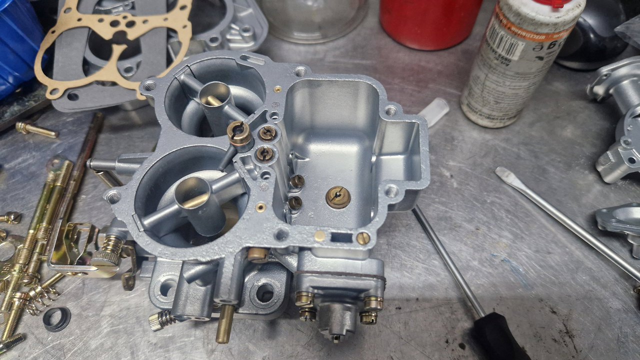 Z osprzętu silnika został już w zasadzie tylko gaźnik. Rozłożyłem go oczywiście razem z resztą silnika już na początku, ale trochę czekałem na części, więc dopiero niedawno go poskładałem. Gaźnik w 1.6 GT to Weber 32/36 DGAV.