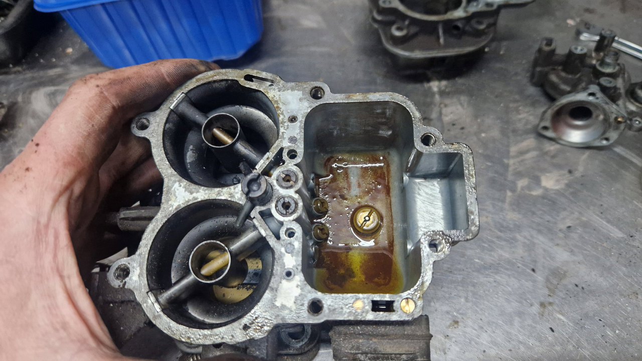 Odkręciłem membranę zaworu mocy i zdemontowałem pływak paliwa.