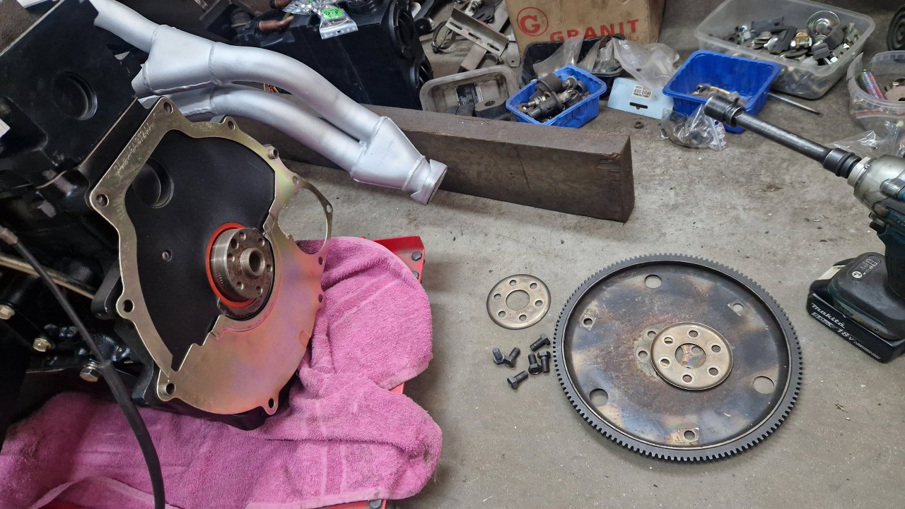 Stwierdziłem też, że zdejmę silnik ze stojaka. Dzięki temu mogę przykręcić koło zamachowe.