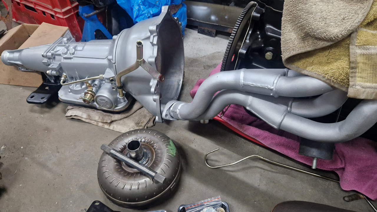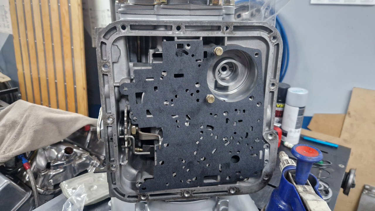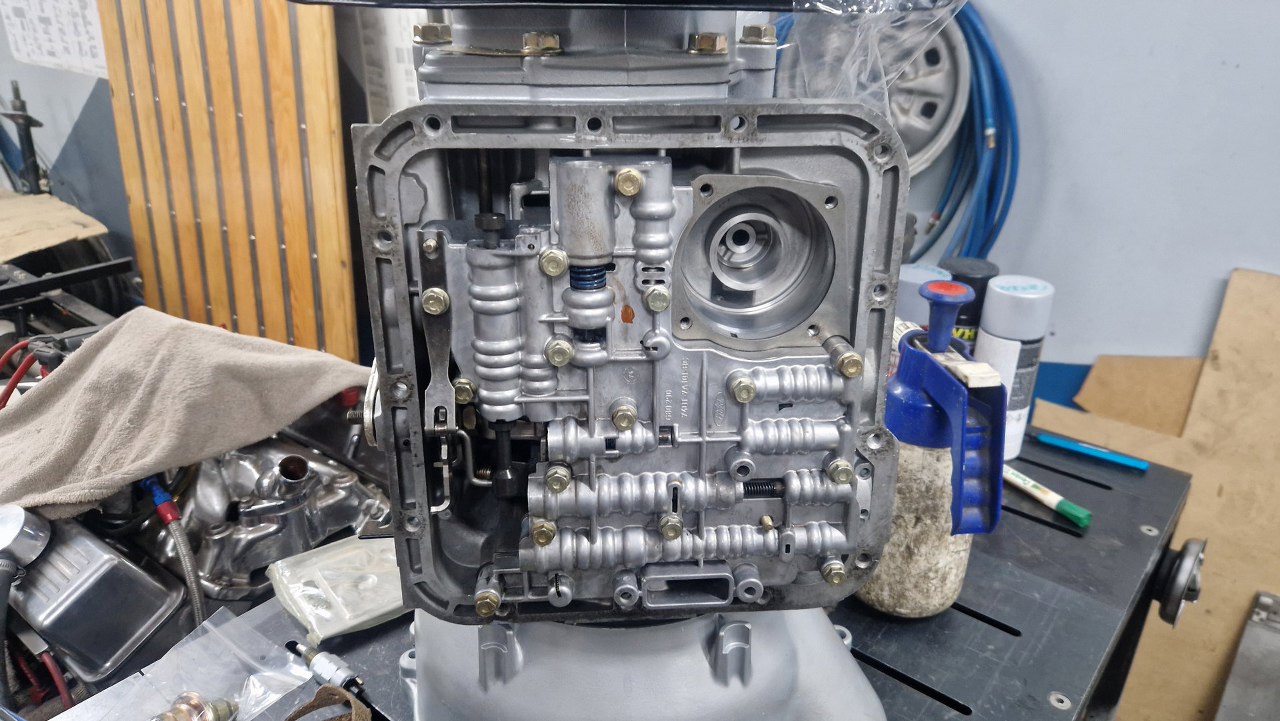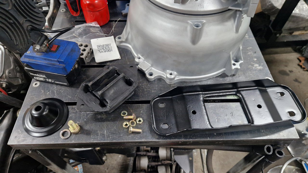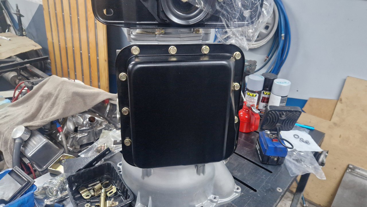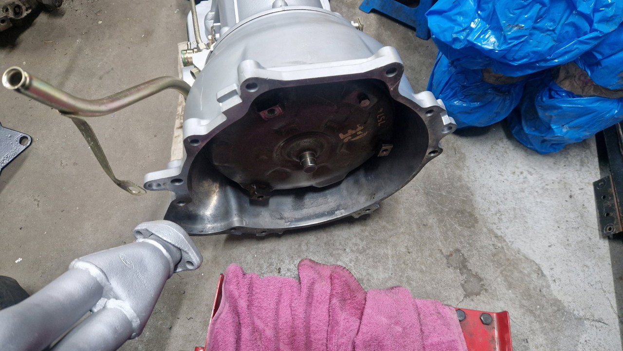 To już w zasadzie wszystko przy skrzyni, więc mogę ją przykręcić do silnika. Najpierw oczywiście trzeba włożyć konwerter i wałek napędu.