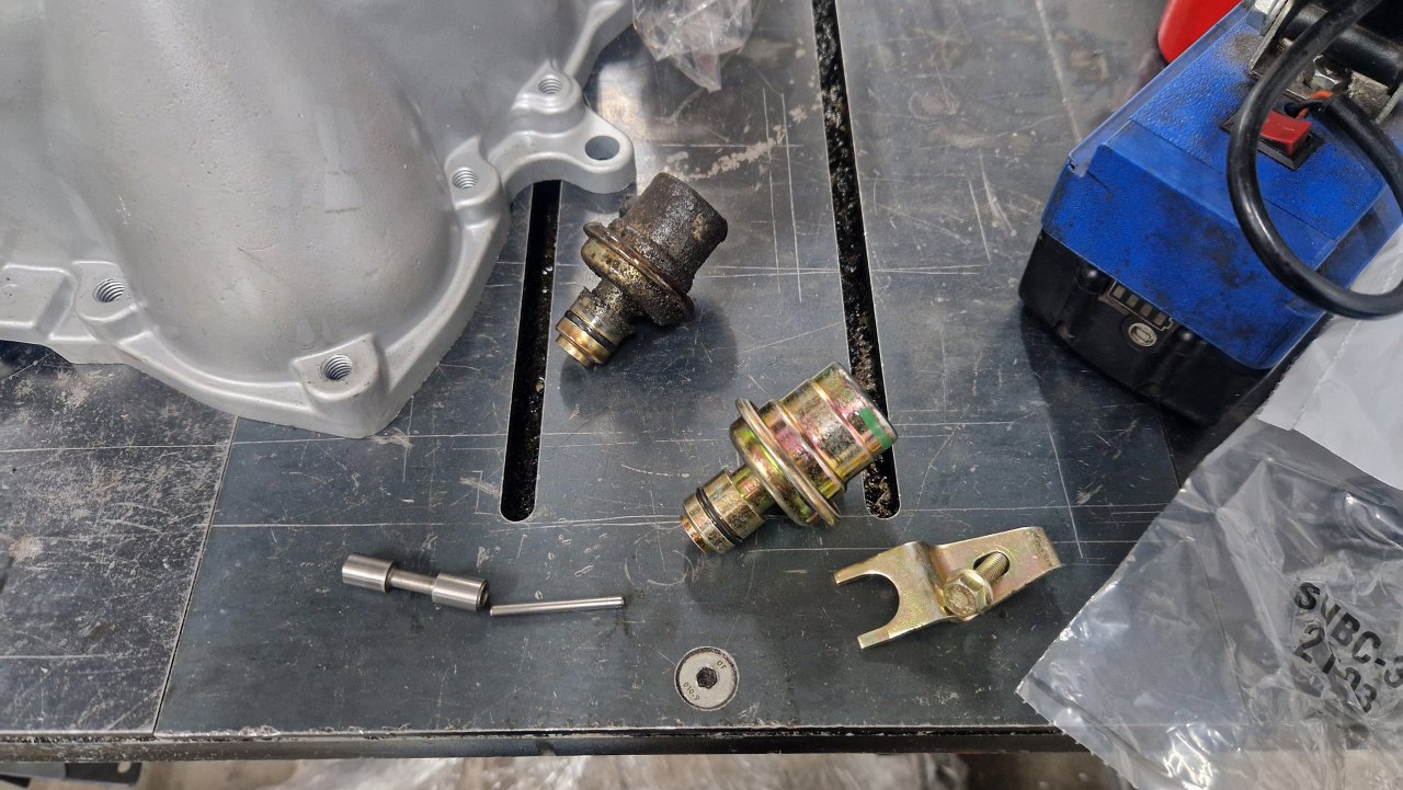 Zdobyłem też nowy modulator podciśnieniowy. Stary może być jeszcze dobry, ale jest w takim stanie, że mu nie ufam. A jego uszkodzenie powodowałoby brak zmiany biegów i wysysanie oleju przez silnik. Tłoczek i popychacz też trzeba włożyć do skrzyni.