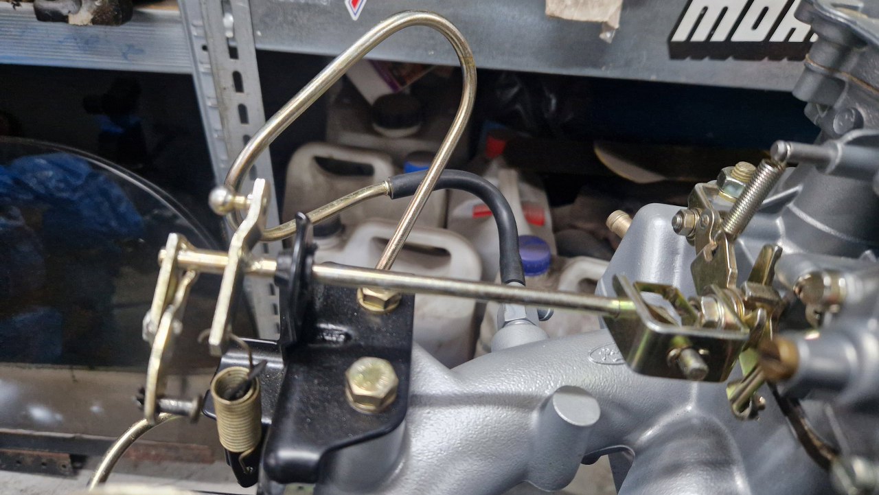 Przy mechanizmie linki gazu założyłem jeszcze sprężynę napinającą dźwigienkę linki kick-downu. Linkę zdemontowałem, bo pękła... muszę dorobić nową. Rurka podciśnienia idąca od modulatora w skrzyni kończy się tu pętelką i jest podłączona do kolektora dolotowego.