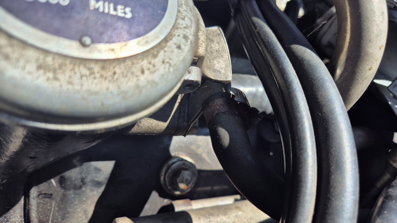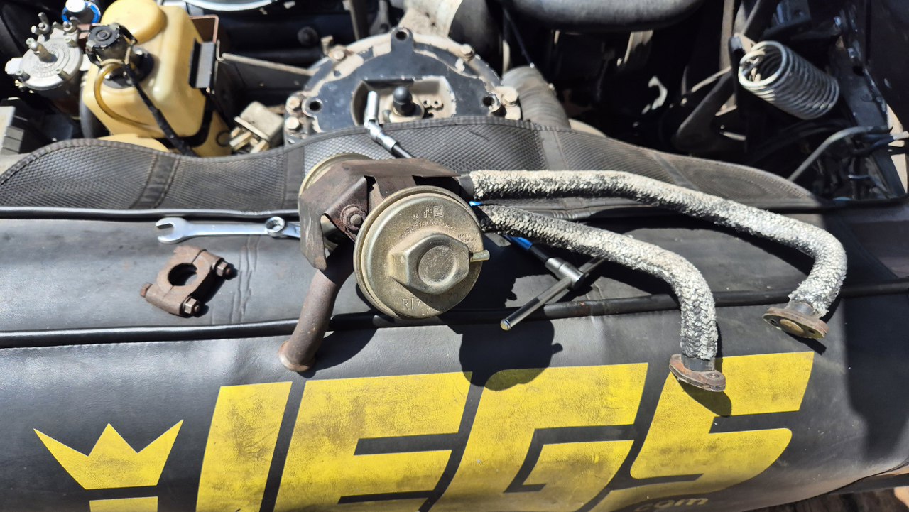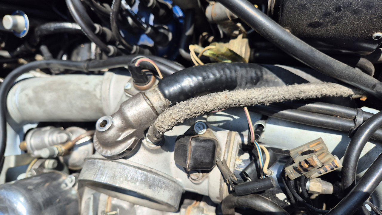 Na lewym kolektorze wydechowym są dwie końcówki, od rurek idących do najprawdopodobniej mechanizmu ssania. To też musżę zdjąć, żeby dostać się do pokrywy. Jedna z nich niestety pękła.