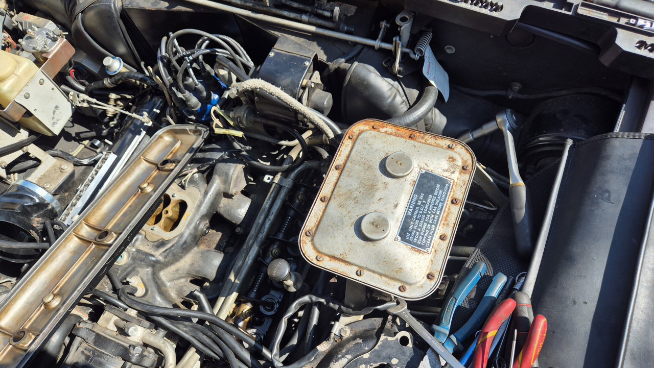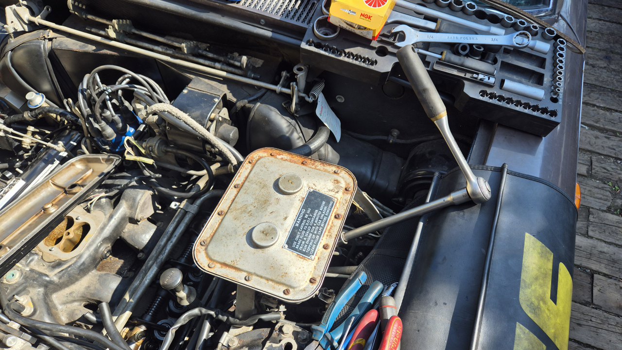 Teraz trzeba to tylko poskładać... Zaczynam od korków wkręconych zamiast rurek dmuchających powietrze. Cały układ zajmuje dużo miejsca, przeszkadza w dostępie do silnika, nic nie daje, a do tego wymagałby naprawy, bo rurki są poparciałe. Dlatego pozostanie poza samochodem. Dostęp do wkręcenia jest słaby, chociaż i tak lepiej jest wkręcać korek niż wykręcać rurkę... Tu widać jedno z podejść, za zbiorniczkiem.