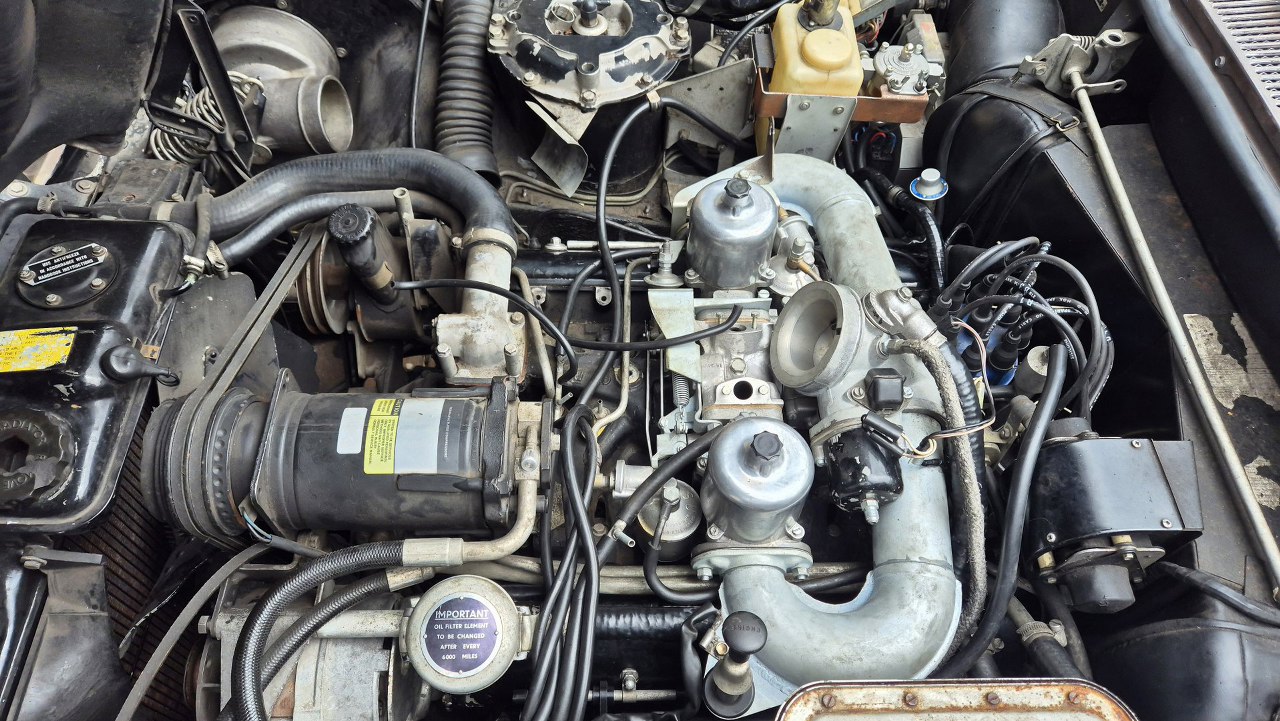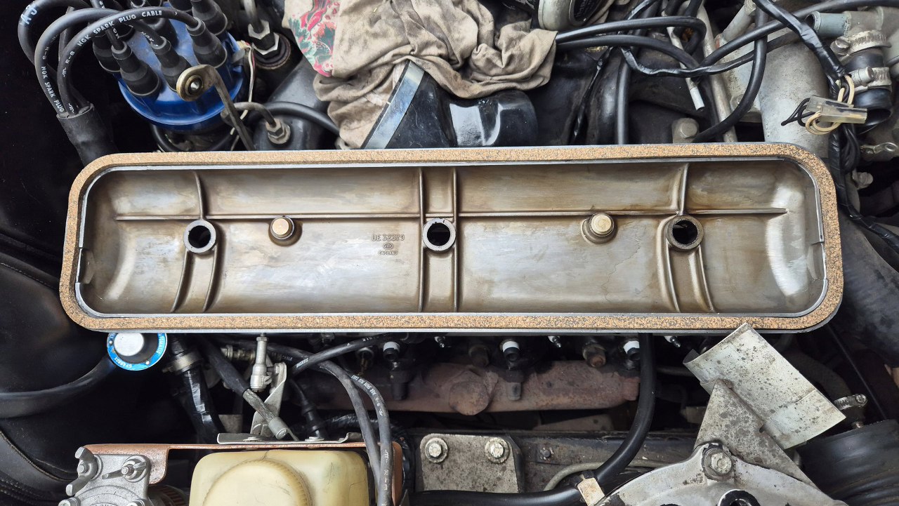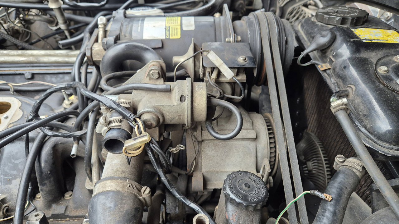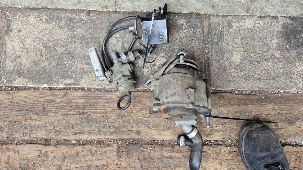 Wracam do silnika i jego ekologii. Zamiast robić przegląd tego, co niewiele daje, posprzątam. Czyli demontuję wszystko, co niepotrzebne. Będzie to można pokazywać na zlotach... leżące w bagażniku :). Tu widać pompę powietrza pędzoną paskiem klinowym, a nad nią dwa zawory strujące powietrzem, podłączone jeszcze do podciśnień i czujników temperatury.