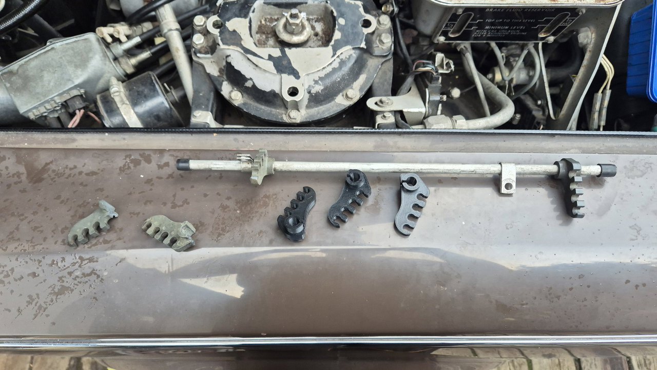 Ponieważ nigdzie nie jest to dostępne, to narysowałem to w 3D i wydrukowałem z poliwęglanu. Mam nadzieję, że ten materiał tu wytrzyma. Przewody są niedaleko od kolektorów wydechowych.