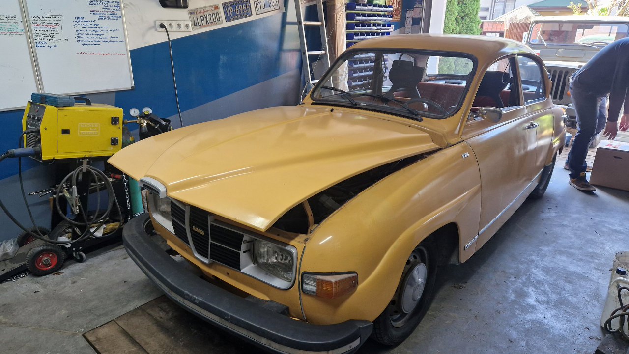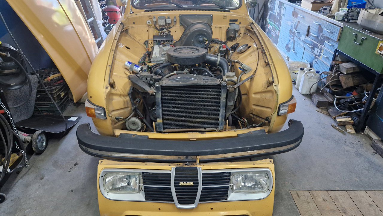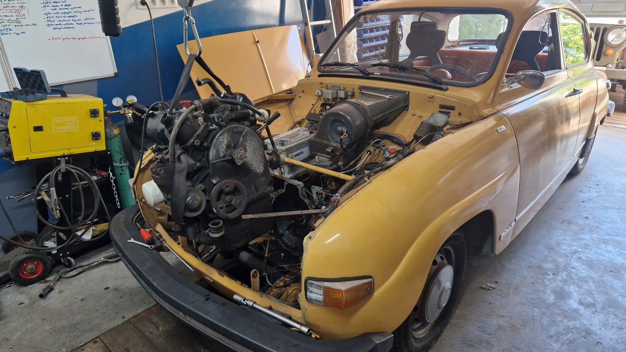 Od jakiegoś czasu Piotr chciał się umówić na wymianę sprzęgła w tym Saabie. Sprzęgło według poprzedniego właściciela było dość niedawno wymienione, ale zaczęło się ślizgać. Normalna przypadłość tych Saabów w sumie. Zapytałem się, czy skoro silnik już i tak będzie wyjęty, czy mamy też zajrzeć do panewek wałka balansu i rozrządu. Bo oczywiście jest to kupa pracy więcej, ale te panewki potrafią się wykruszyć i ciśnienie oleju idzie w las. Uzgodniliśmy, że zrobimy maraton i spróbuję jednego dnia to ogarnąć. Potem mówiłem, że nikt mu nie uwierzy, że zrobione to zostało w jeden dzień, nie dlatego, że się nie da, ale że nikt nie uwierzy, że ktoś by się tego podjął ;). W każdym razie pewnego dnia rano pojawił się u mnie znowu piaskowy Saab 96.
