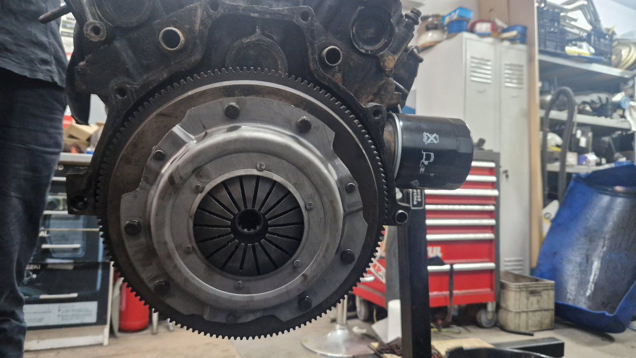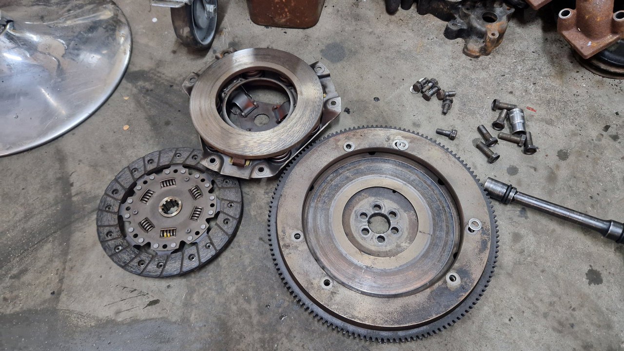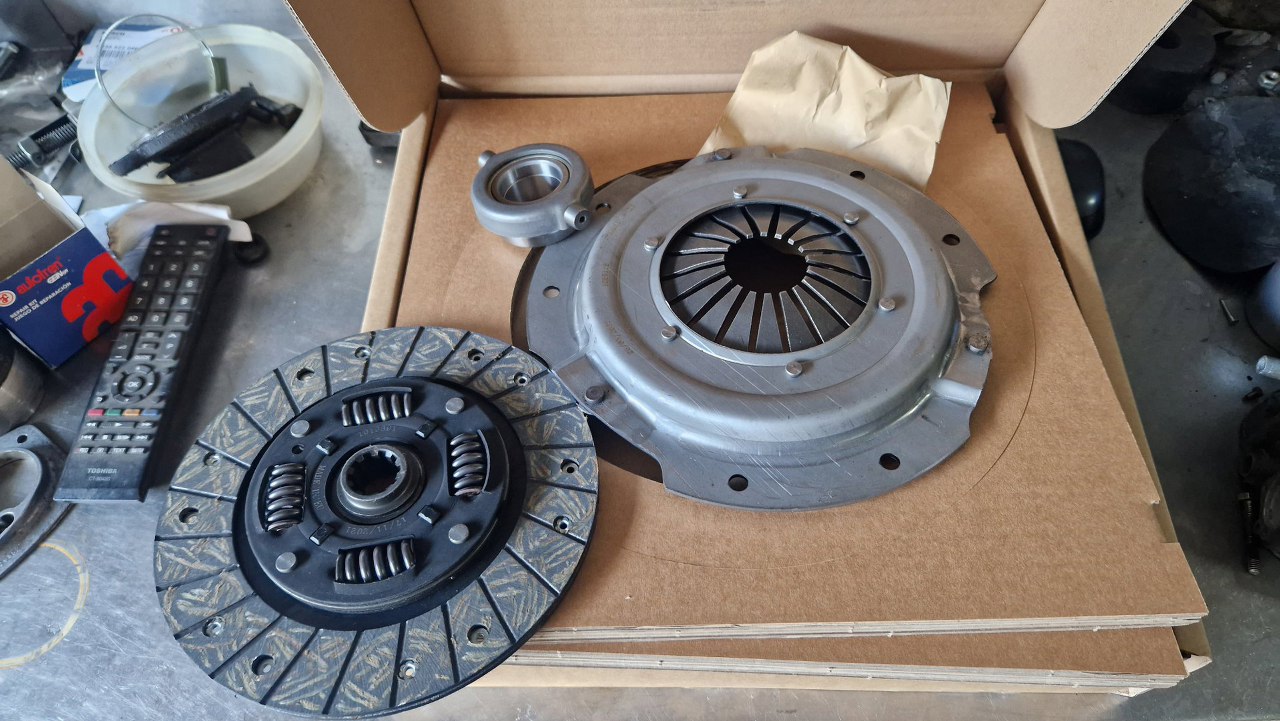 Plan jest taki, żeby zamontować sprzęgło nowszej konstrukcji, już typu "słoneczko". Można je kupić tylko w komplecie, tarcza jest dopasowana grubością do docisku. Sam docisk jest sporo cieńszy niż stary typ, co powoduje konieczność zastosowania nieco innego, grubszego łożyska wyciskowego.