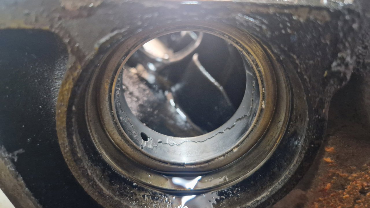 Po wyjęciu wałka wyrównoważającego od razu widać, że warto było tu zajrzeć. Panewka już mocno nadgryziona.