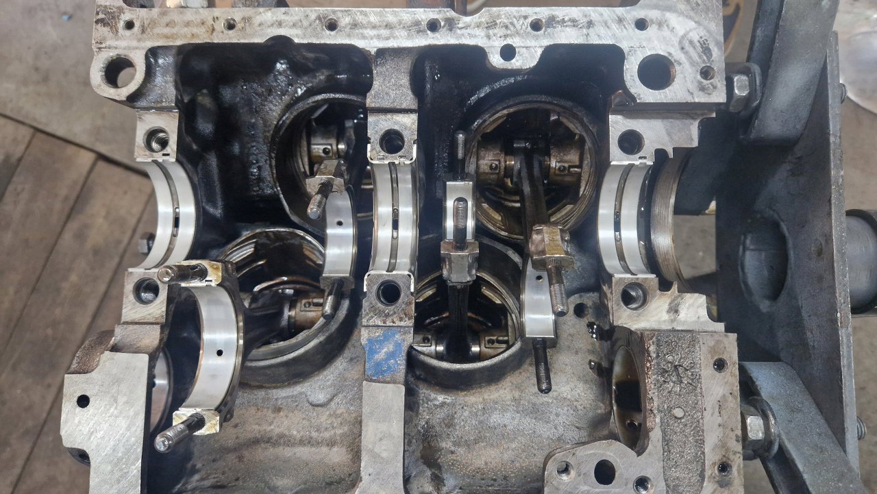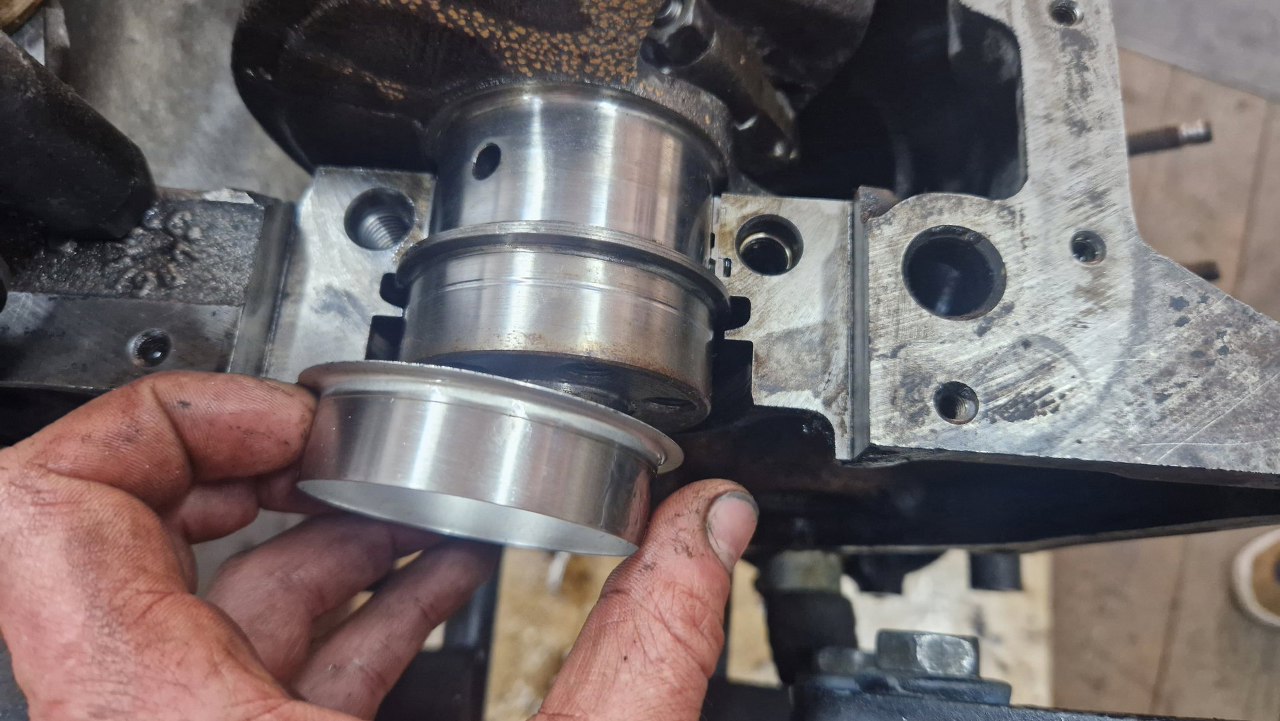 Nie dałem rady założyć tulejki do końca, bo przeszkadza w tym kawałek bloku. Musiałem więc zdjąć wszystkie panewki.