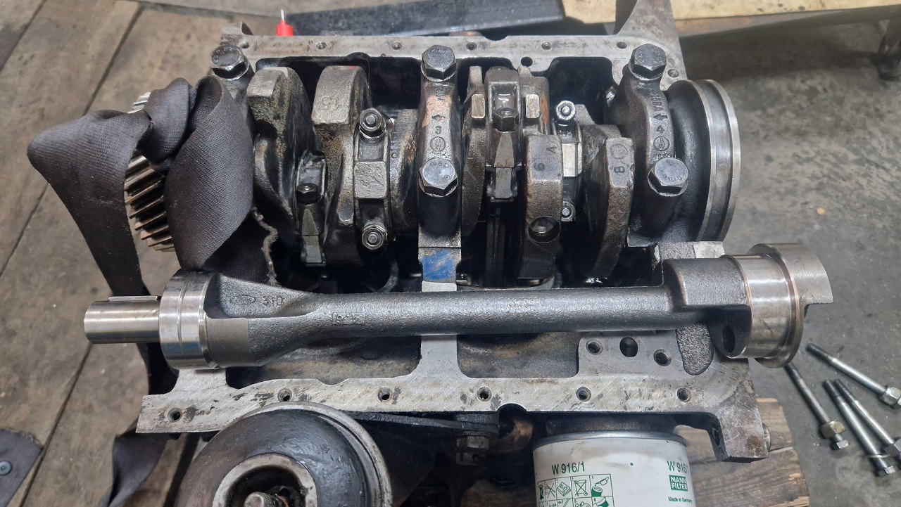 Po założeniu tulejki włożyłem wał z powrotem. Pozostałe elementy silnika też zostały domyte, na przykład wałek balansu.
