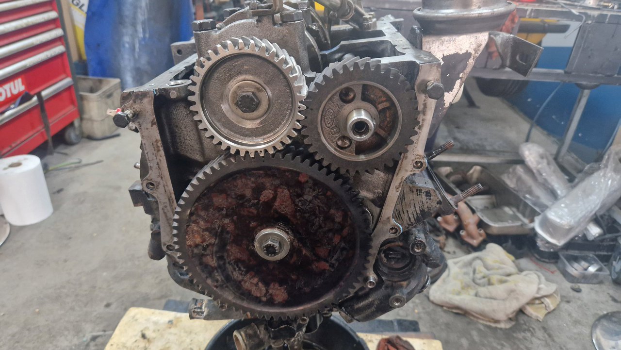 Sprzęgło sprzęgłem, ale trzeba zrobić coś jeszcze. Muszę się dobrać do panewek. Zdjąłem miskę oleju i pokrywę rozrządu. W środku nieco zapyziałego oleju.