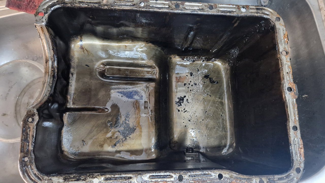 Na dnie znalazłem pokruszone resztki uszczelniaczy zaworowych, które wymieniłem już poprzednio, są też płatki aluminium z uszkodzonych panewek.