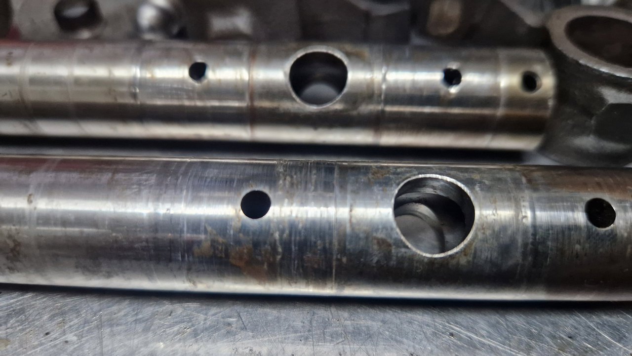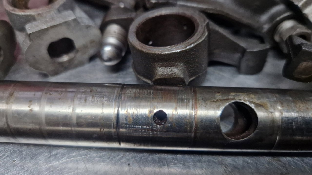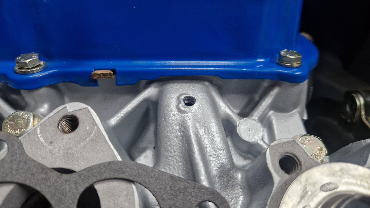 Przykręcając pokrywy zaworów zauważyłem otworek, o którym zupełnie zapomniałem. Ktoś kiedyś go tutaj po coś wywiercił, ale nie mam pojęcia po co. Wkręcę tu śrubę, żeby go zaślepić.