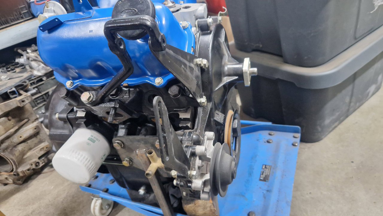 Przykręciłem mocowanie alternatora, a potem i łapy trzymające silnik na stojaku - będę go niedługo uruchamiał luzem.