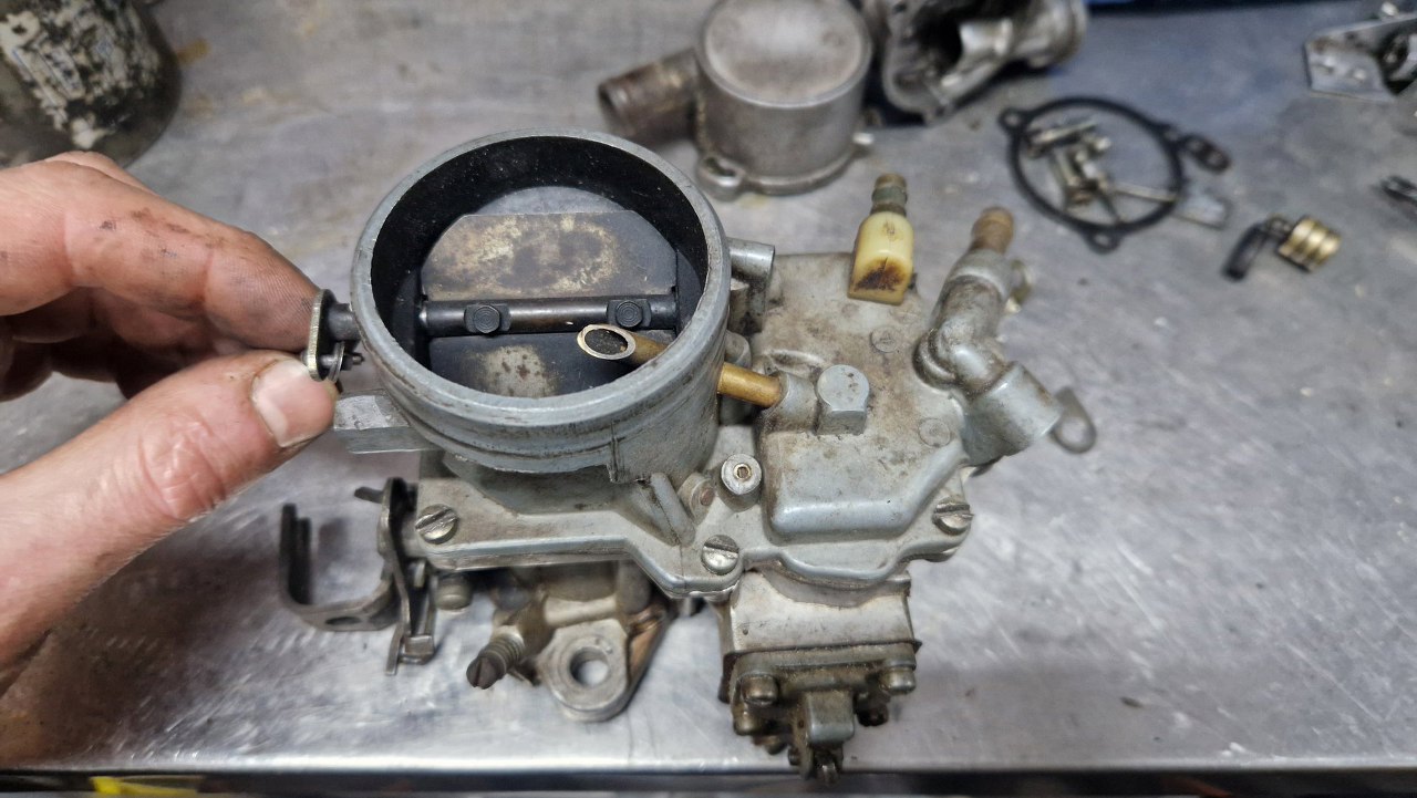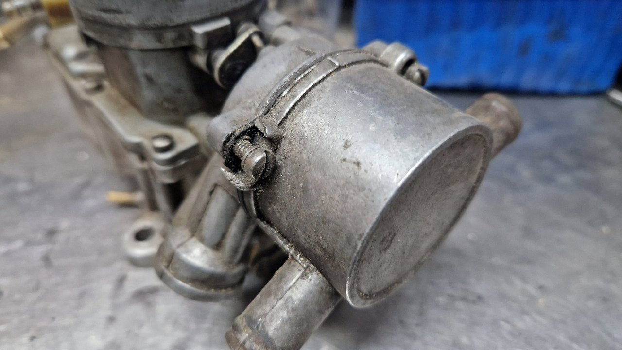 Odwróciłem gaźnik, żeby zdemontować przepustnicę.