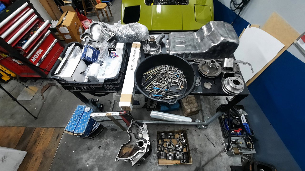 Szybko ogarnąłem takie czynności jak wysłanie części do malowania proszkowego, czy śrubek do cynkowania, żeby już coś się działo. Zabieram się teraz za blok. W tej stercie części dostałem m.in. nowy wałek rozrządu i jego panewki.