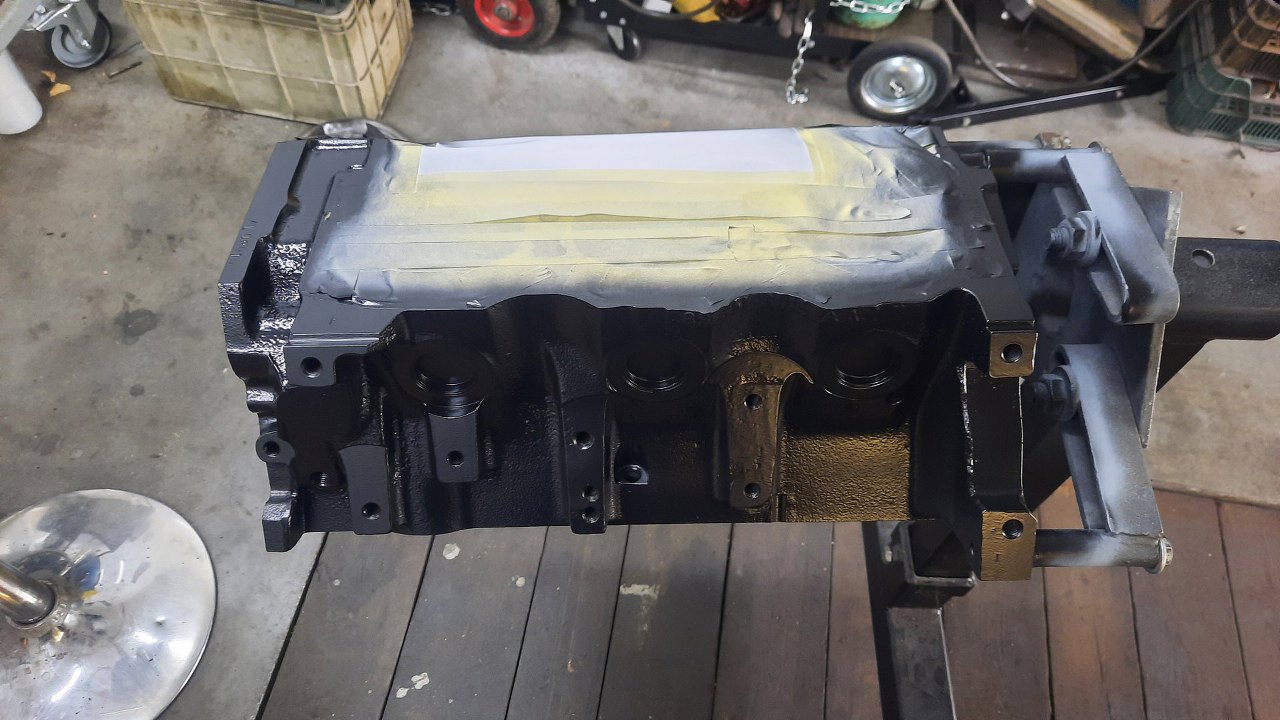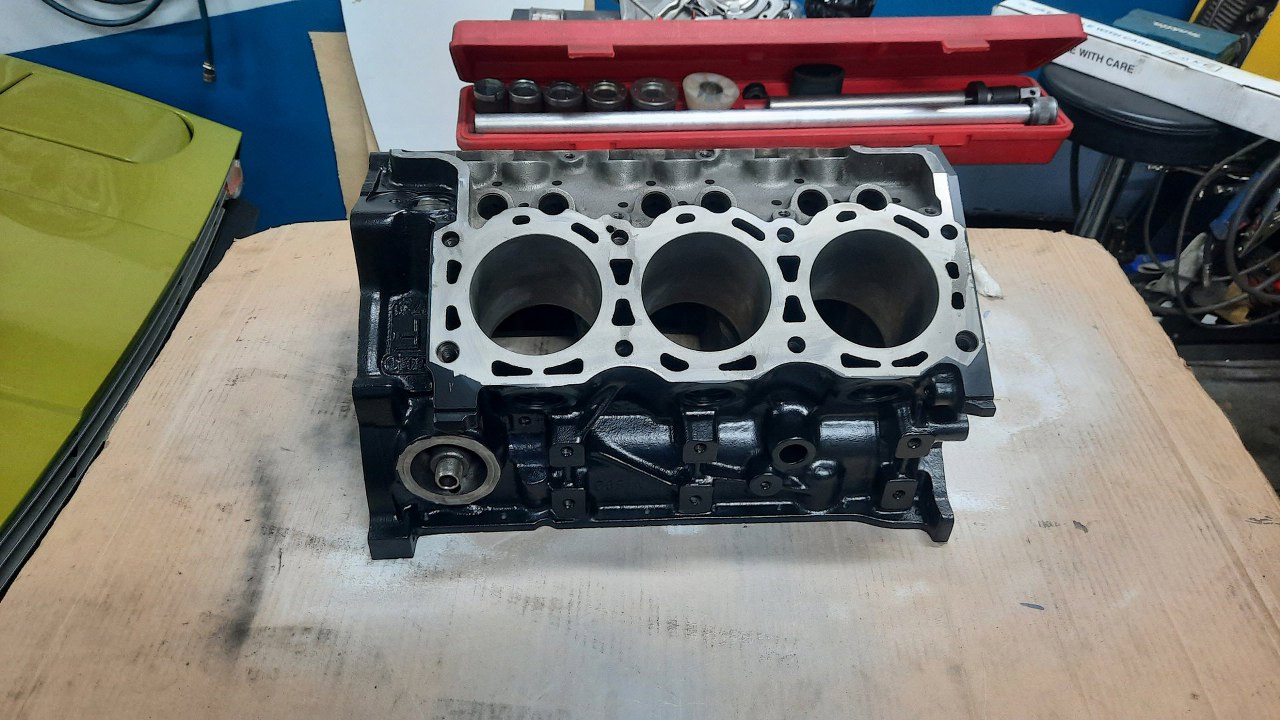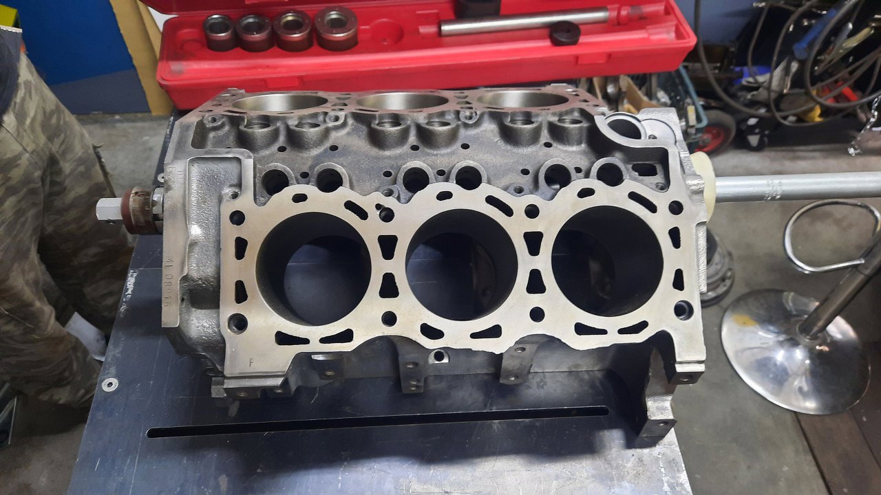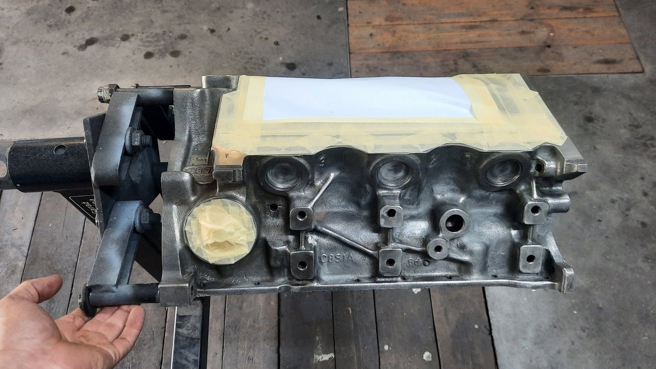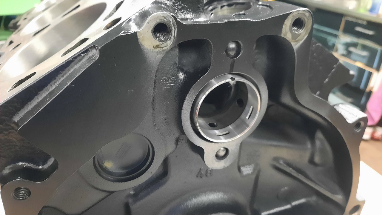 Swoją drogą, to blok wygląda teraz świetnie w klasycznej czerni :). Przed przyjazdem do mnie cylindry były honowane, a blok zdaje się planowany. Cylindry były tulejowane pod oryginalne tłoki.