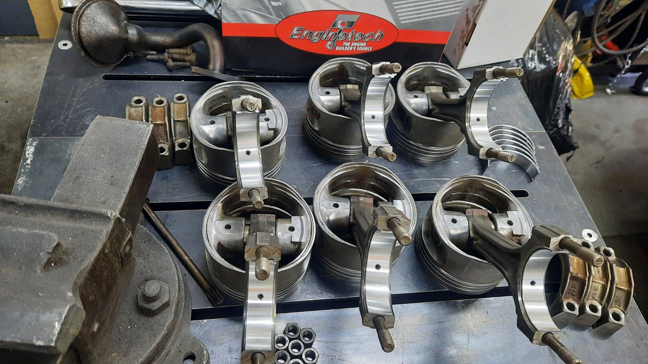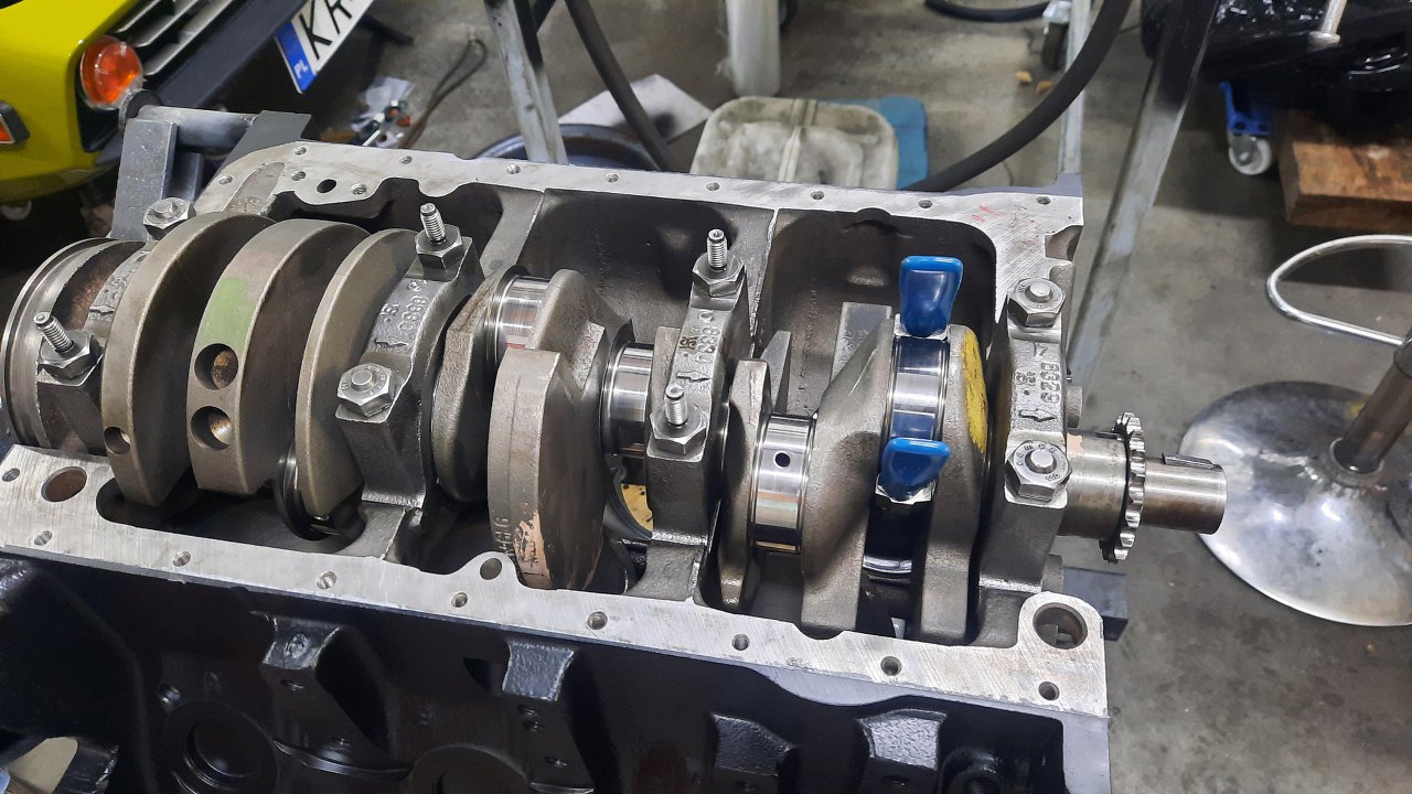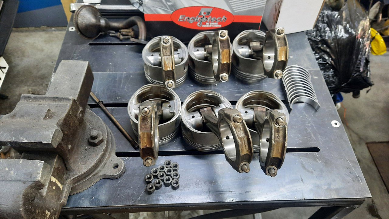 Kolejnym krokiem w montażu silnika będzie włożenie tłoków. Tłoki w tym przypadku są oryginalne, używane. Tłoki się zresztą praktycznie nie zużywają, jeśli silnik jest w porządku :). Zostaną tu założone nowe panewki i pierścienie. Najpierw odkręciłem stopy korbowodów.