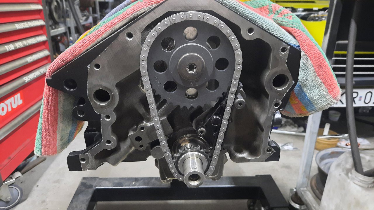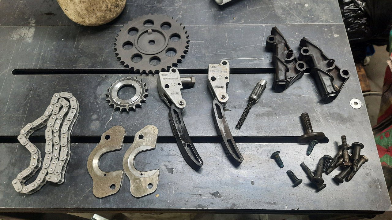 Przechodzę na przód silnika. Dostałem nowy zestaw łańcucha rozrządu - łańcuch i dwa koła zębate. Reszta (ślizgi, napinacze) jest używana.