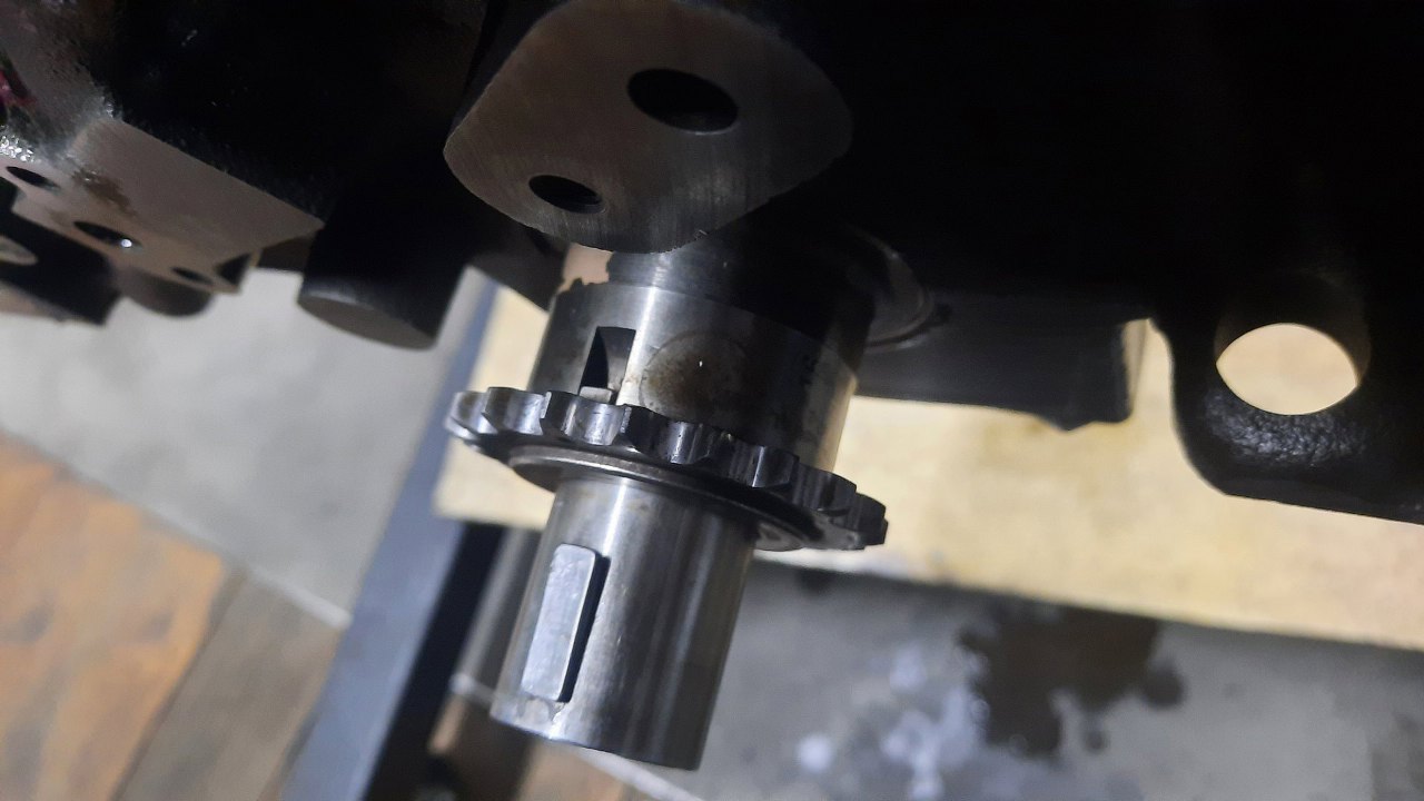 Kółka zębate nie są mocowane na wale na klinach, a mają wystające kwadraciki, które wchodzą w wycięcia w wale. Dużo słabsze konstrukcyjnie, ale prawdopodobnie sporo tańsze w produkcji... Żeby zdjąć te kółko z wału korbowego muszę wyjąć najpierw klin od koła pasowego.