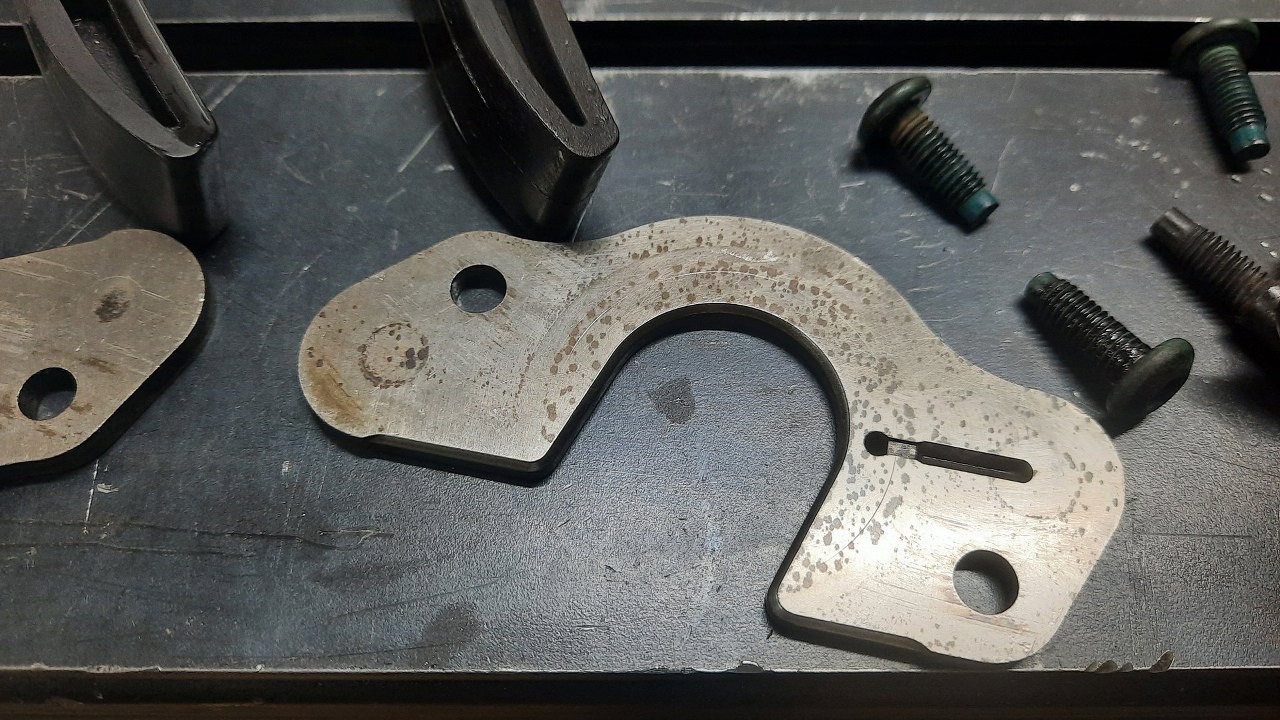 Potem odkręciłem koło z wałka rozrządu i wybrałem lepszą blaszkę go mocującą. Ta po prawej jest wytarta, ale ta po lewej jest bardzo ładna.