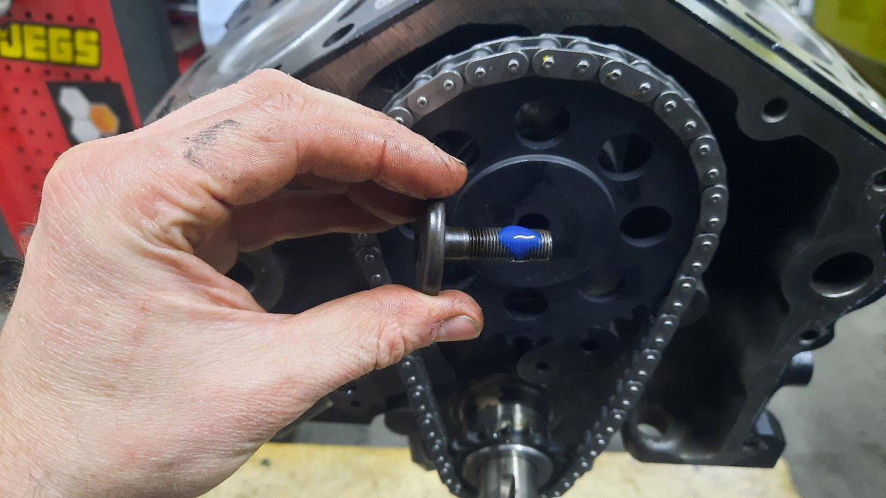 Podobnie śrubę kola wałka rozrządu. Tu już jest założony łańcuch.
