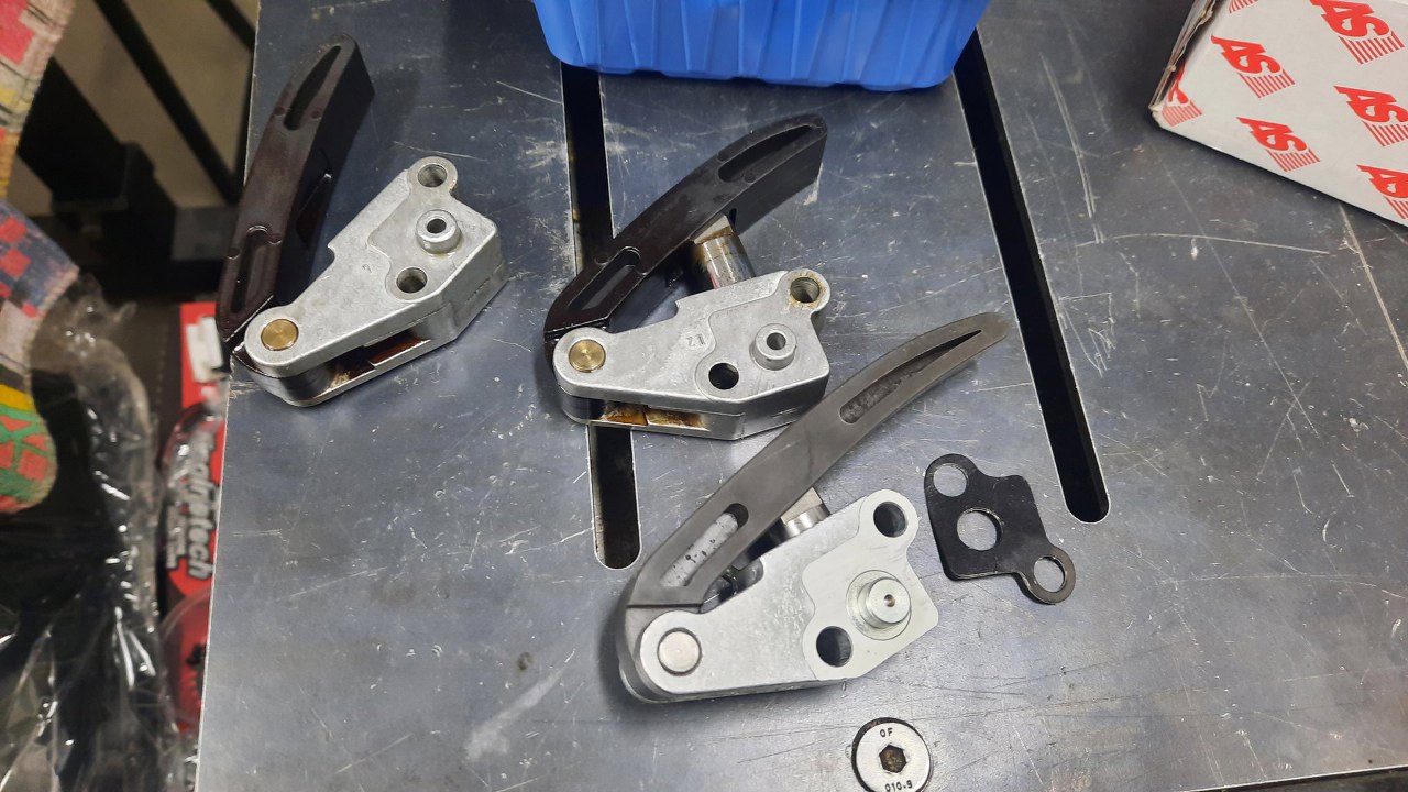 Napinacze były słabe, bardzo wytarte. Na szybko Tomek znalazł napinacz od 4.0 V6 z Explorera. Jest trochę inny - ma dłuższy ślizg.
