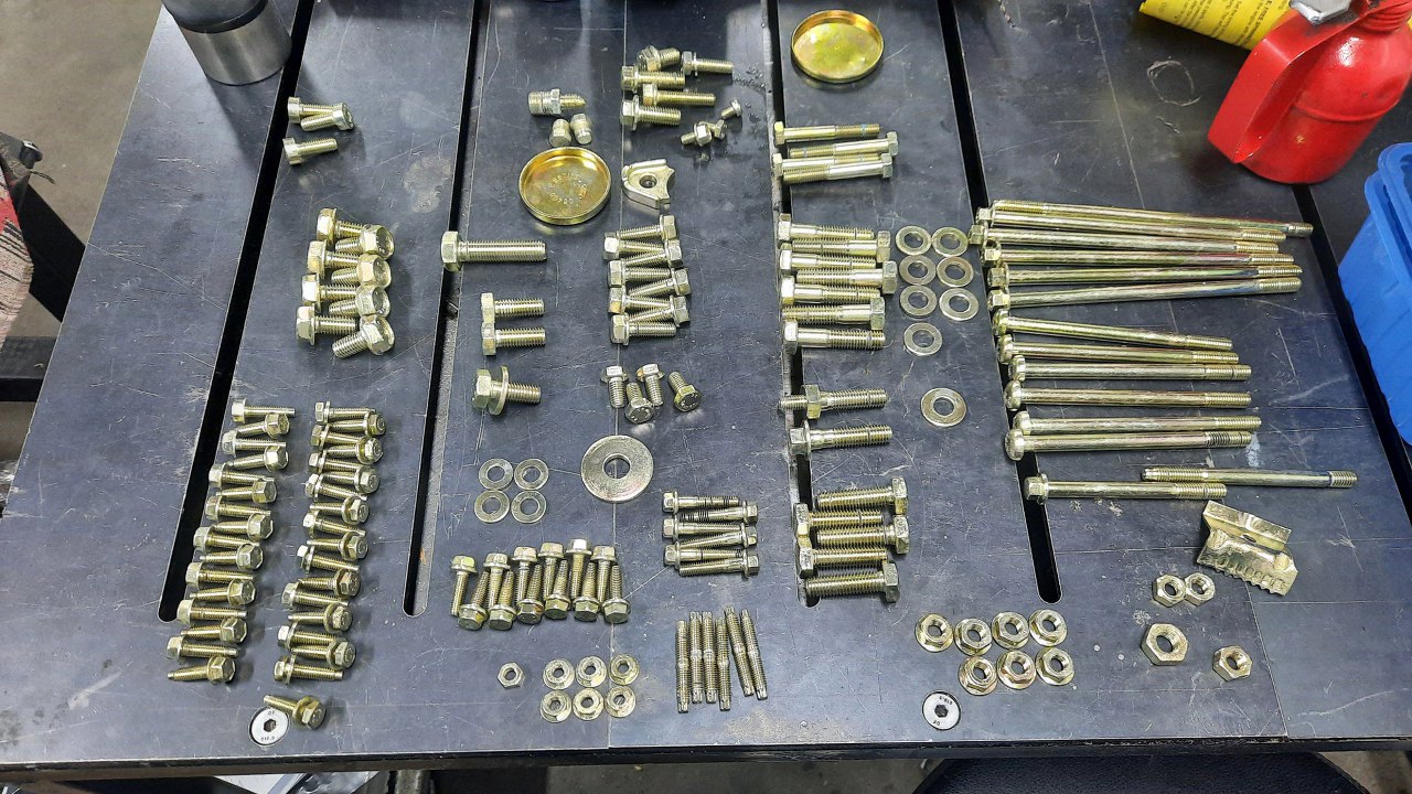 W międzyczasie wróciły śrubki z cynkowania. Rozplątałem je z drucików, na których były cynkowane i wstępnie posegregowałem. Śrubki są zupełnie inne niż w starych V-kach Forda, więc muszę się w tym jakoś zorientować :).