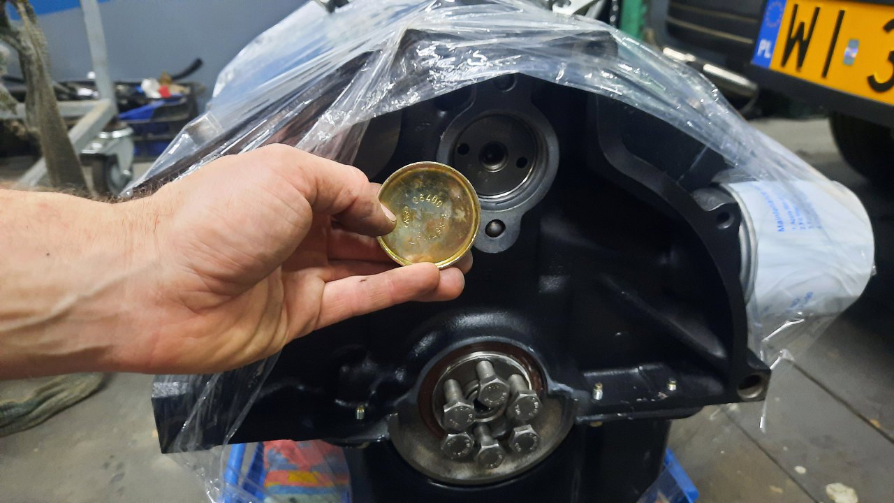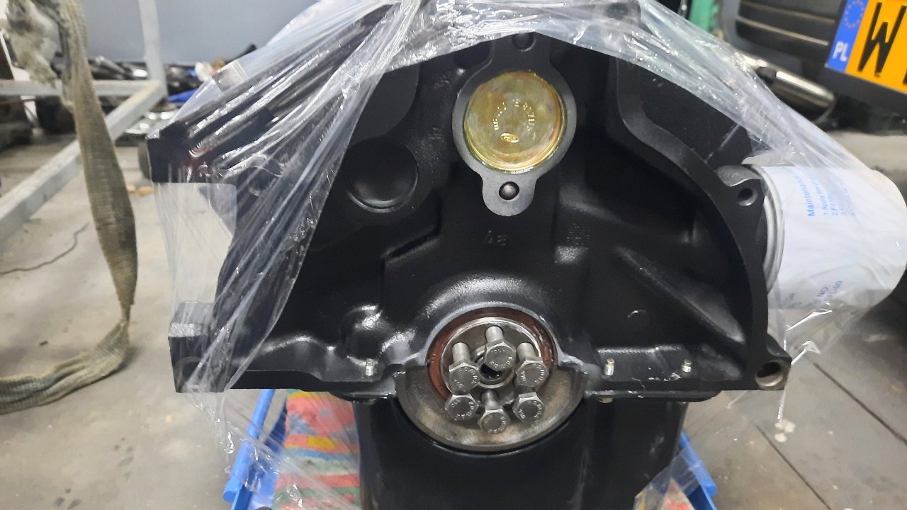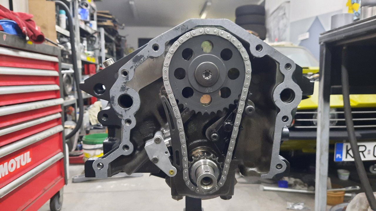 Zawinąłem silnik w folię, żeby poczekał, aż będą gotowe części na kolejny etap składania. Potem zdjąłem go ze stojaka. Mając dostęp do tyłu silnika wbiję od razu zaślepkę wałka rozrządu. Ją też oddałem do cynkowania.
